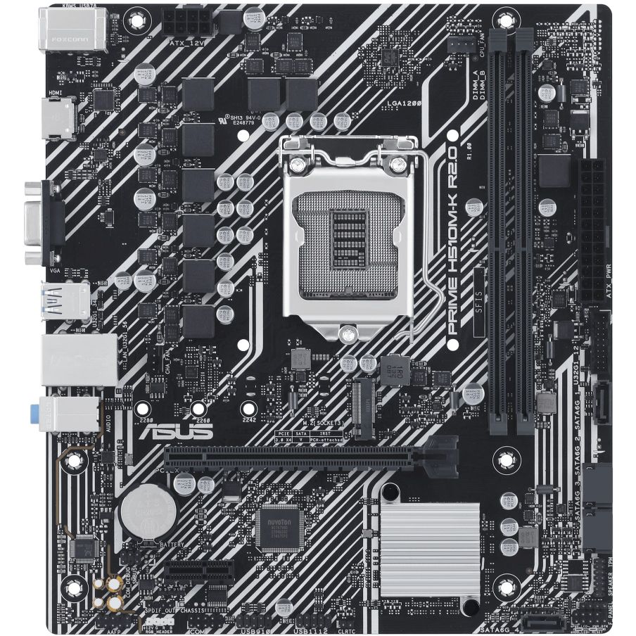 ASUS PRIME H510M-K R2.0. Prozessorhersteller: Intel, Prozessorsockel: LGA 1200 (Socket H5), Kompatible Prozessoren: Intel® Celeron®, Intel® Core™ i3, Intel® Core™ i5, Intel® Core™ i7, Intel® Core™ i9,…. Unterstützte Arbeitsspeicher: DDR4-SDRAM, RAM-Speicher maximal: 64 GB, Arbeitsspeicher Typ: DIMM. Unterstützte Speicherlaufwerk-Schnittstellen: M.2, SATA III, Unterstützte Speicherlaufwerke: HDD & SSD. Ethernet Schnittstellen Typ: Schnelles Ethernet, Gigabit Ethernet. Komponente für: PC, Motherboardformfaktor: micro ATX, Motherboard Chipsatz Familie: Intel