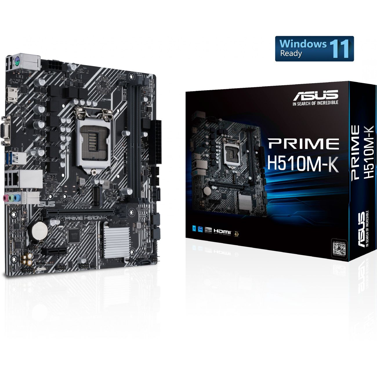 ASUS PRIME H510M-K. Prozessorhersteller: Intel, Prozessorsockel: LGA 1200 (Socket H5), Kompatible Prozessoren: Intel® Celeron®, Intel® Core™ i3, Intel® Core™ i5, Intel® Core™ i7, Intel® Core™ i9,…. Unterstützte Arbeitsspeicher: DDR4-SDRAM, RAM-Speicher maximal: 64 GB, Arbeitsspeicher Typ: DIMM. Unterstützte Speicherlaufwerk-Schnittstellen: M.2, PCI Express 3.0, SATA III, Unterstützte Speicherlaufwerke: HDD & SSD. Maximale Auflösung: 3840 x 2160 Pixel. HDMI-Version: 1.4/2.0, USB-Stecker: USB Typ-A