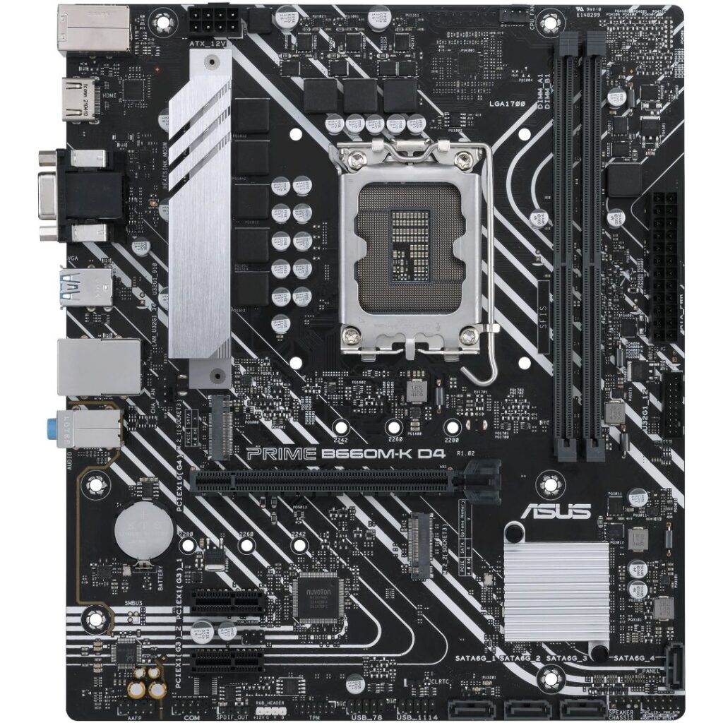 ASUS PRIME B660M-K D4. Prozessorhersteller: Intel, Prozessorsockel: LGA 1700, Kompatible Prozessoren: Intel® Celeron®, Intel® Core™ i3, Intel® Core™ i5, Intel® Core™ i7, Intel® Core™ i9,…. Unterstützte Arbeitsspeicher: DDR4-SDRAM, RAM-Speicher maximal: 64 GB, Arbeitsspeicher Typ: DIMM. Unterstützte Speicherlaufwerk-Schnittstellen: M.2, PCI Express 4.0, SATA III, Unterstützte Speicherlaufwerke: HDD & SSD, RAID Level: 0, 1, 5, 10. Ethernet Schnittstellen Typ: Gigabit Ethernet. Komponente für: PC, Motherboardformfaktor: micro ATX, Motherboard Chipsatz Familie: Intel