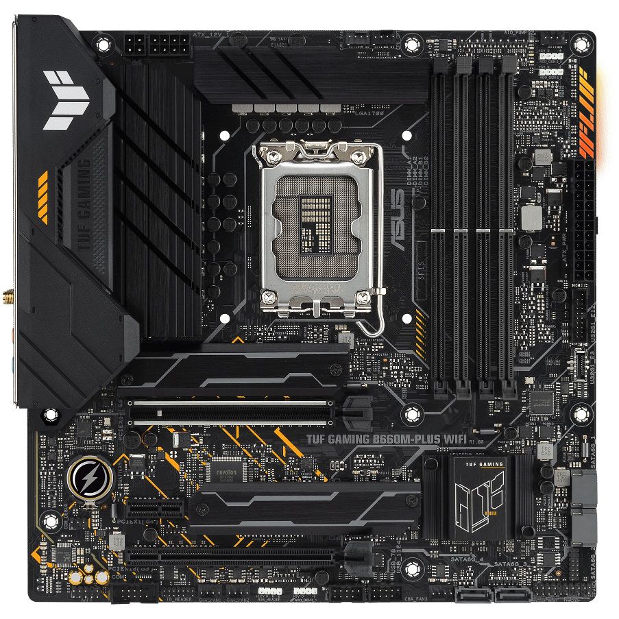 ASUS TUF GAMING B660M-PLUS WIFI. Prozessorhersteller: Intel, Prozessorsockel: LGA 1700, Kompatible Prozessoren: Intel® Celeron®, Intel® Core™ i3, Intel® Core™ i5, Intel® Core™ i7, Intel® Core™ i9,…. Unterstützte Arbeitsspeicher: DDR5-SDRAM, RAM-Speicher maximal: 128 GB, Arbeitsspeicher Typ: DIMM. Unterstützte Speicherlaufwerk-Schnittstellen: M.2, PCI Express 4.0, SATA III, Unterstützte Speicherlaufwerke: HDD & SSD, RAID Level: 0, 1, 5, 10. Ethernet Schnittstellen Typ: 2.5 Gigabit Ethernet, Top WLAN-Standard: Wi-Fi 6 (802.11ax), WLAN-Standards: 802.11a, 802.11b, 802.11g, Wi-Fi 4 (802.11n), Wi-Fi 5 (802.11ac), Wi-Fi 6 (802.11ax). Komponente für: PC, Motherboardformfaktor: micro ATX, Motherboard Chipsatz Familie: Intel
