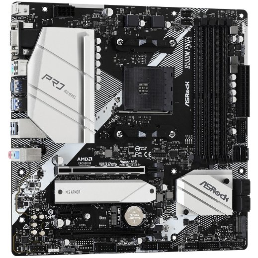 Asrock B550M Pro4. Prozessorhersteller: AMD, Prozessorsockel: Sockel AM4, Kompatible Prozessoren: AMD Ryzen 3000 Series. Unterstützte Arbeitsspeicher: DDR4-SDRAM, RAM-Speicher maximal: 128 GB, Arbeitsspeicher Typ: DIMM. Unterstützte Speicherlaufwerk-Schnittstellen: M.2, SATA III, Unterstützte Speicherlaufwerke: HDD & SSD, RAID Level: 0, 1, 10. Parallele Verarbeitungstechnologie: CrossFireX, Quad-GPU CrossFireX, Maximale Auflösung: 5120 x 2880 Pixel. Ethernet Schnittstellen Typ: Gigabit Ethernet, LAN-Controller: Realtek RTL8111H