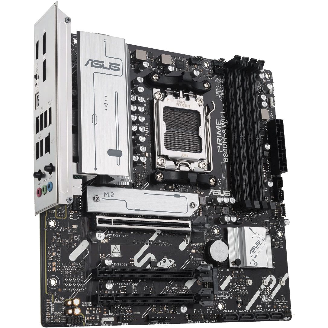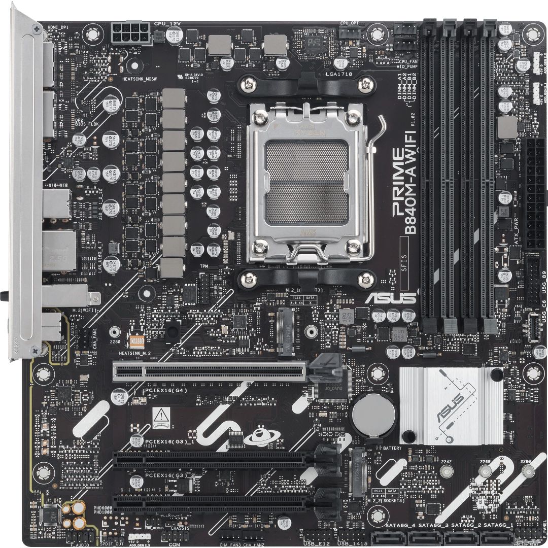 ASUS PRIME B840M-A WIFI. Prozessorhersteller: AMD, Prozessorsockel: Sockel AM5, Kompatible Prozessoren: AMD Ryzen 7000 Series, AMD Ryzen 8000 Series, AMD Ryzen 9000 Series. Unterstützte Arbeitsspeicher: DDR5-SDRAM, RAM-Speicher maximal: 192 GB, Arbeitsspeicher Typ: DIMM. Unterstützte Speicherlaufwerk-Schnittstellen: M.2, SATA III, Unterstützte Speicherlaufwerke: HDD & SSD, RAID Level: 0, 1, 5, 10. Ethernet Schnittstellen Typ: 2.5 Gigabit Ethernet, Top WLAN-Standard: Wi-Fi 6E (802.11ax), WLAN-Standards: Wi-Fi 6E (802.11ax). Komponente für: PC, Motherboardformfaktor: micro ATX, Motherboard Chipsatz Familie: AMD