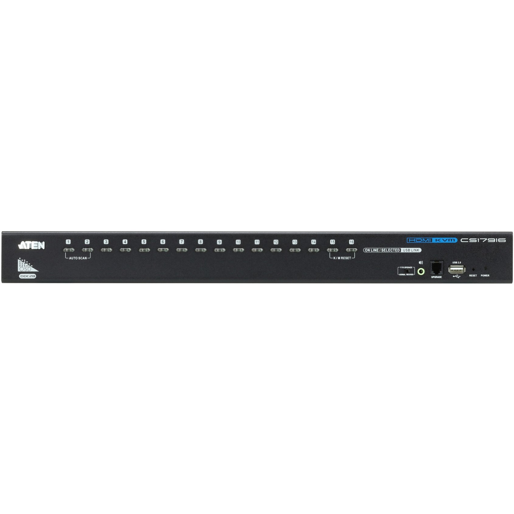 ATEN CS17916. Tastatur Porttyp: USB, Maus-Porttyp: USB, Video Porttyp: HDMI. HD-Typ: WUXGA, Maximale Auflösung: 1920 x 1200 Pixel, Videobandbreite: 60 Hz. Produktfarbe: Schwarz, Rack-Kapazität: 1U, Gehäusematerial: Metall. Energiequelle: Gleichstrom, Eingangsspannung: 5 V, Stromverbrauch (Standardbetrieb): 12,2 W. Konformitätsbescheinigungen: RoHS