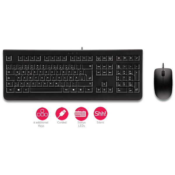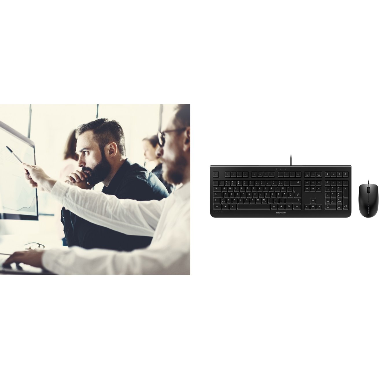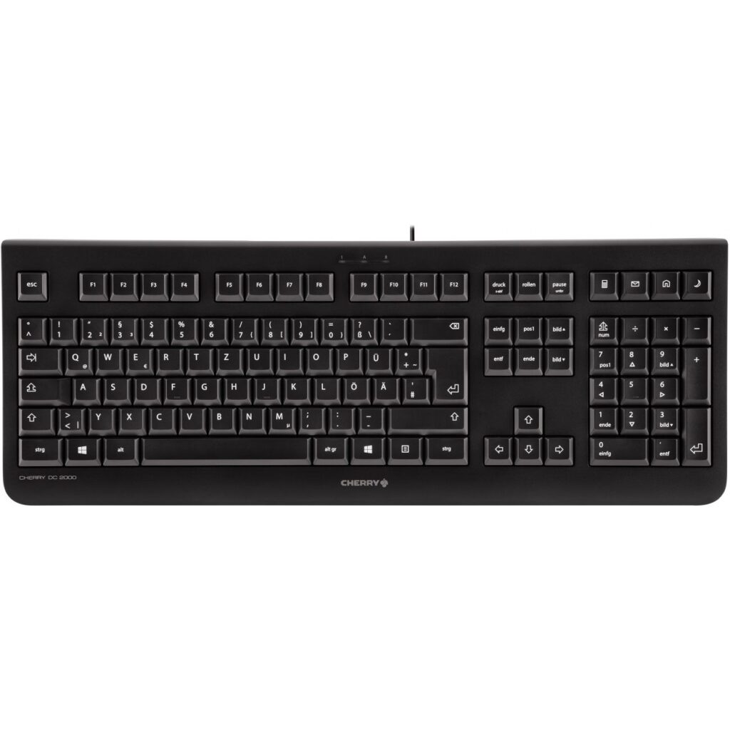 CHERRY DC 2000. Tastatur Formfaktor: Volle Größe (100%). Tastatur-Stil: Gerade. Übertragungstechnik: Kabelgebunden, Geräteschnittstelle: USB, Tastatur-Switch: Mechanischer Switch, Tastaturaufbau: QWERTY, Tastatur – Tastenanzahl: 109. Kabellänge: 1,8 m. Empfohlene Nutzung: Büro. Produktfarbe: Schwarz. Maus enthalten