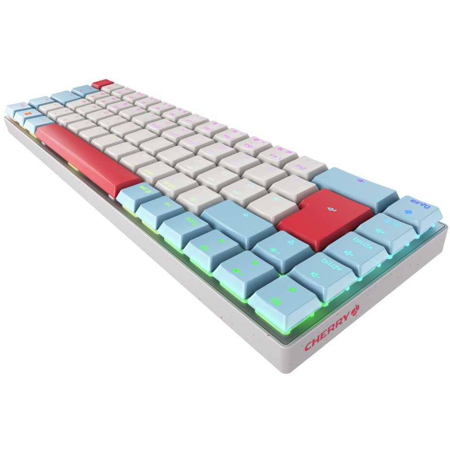 CHERRY MX-LP 2.1 Compact Wireless. Tastatur Formfaktor: 65%, Übertragungstechnik: Kabellos, Geräteschnittstelle: RF Wireless + Bluetooth, Tastatur-Switch: Mechanischer Switch, Tastaturaufbau: QWERTZ, Tastatur – Tastenanzahl: 69. Typ der Hintergrundbeleuchtung: RGB-LED. Kabellänge: 1,6 m. Empfohlene Nutzung: Gaming. Produktfarbe: Weiß