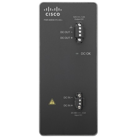 Cisco PWR-IE65W-PC-DC=. Zweck: Netzvermittlung, Netzteiltyp: Drinnen, Ausgangsleistung: 65 W. DC-Ausgang Volt: +54V. Produktfarbe: Schwarz. Breite: 66 mm, Tiefe: 116,8 mm, Höhe: 150 mm. Haltezeit: 20 ms