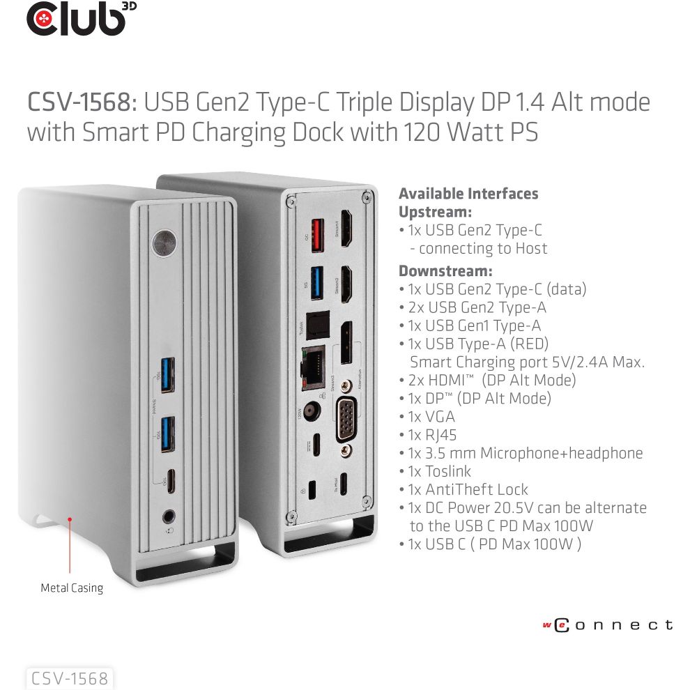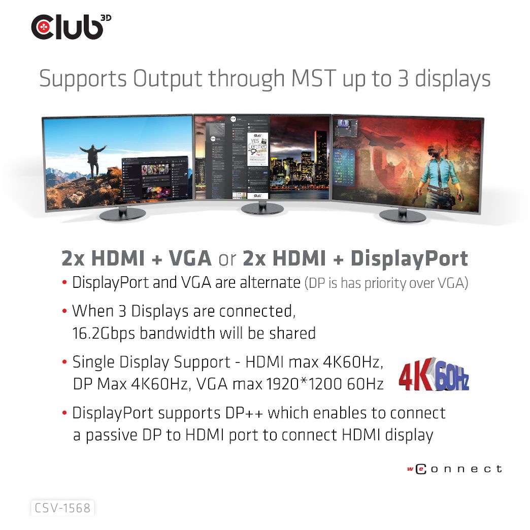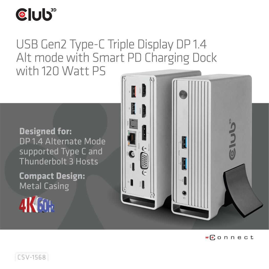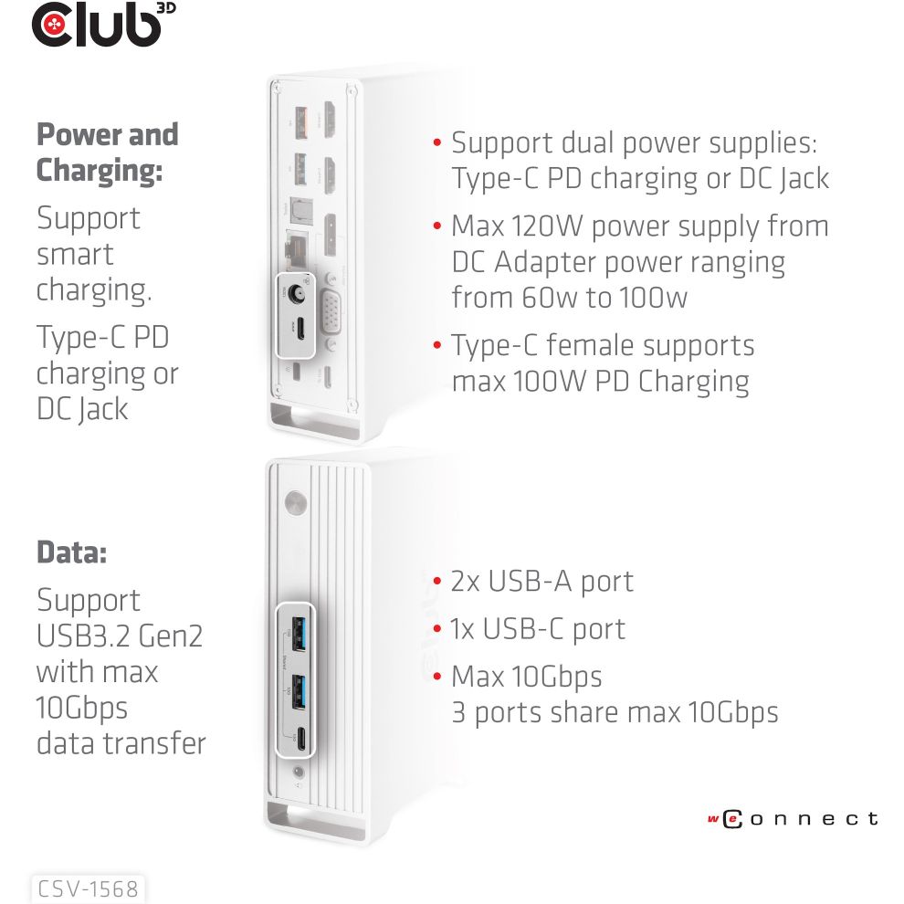 Club3D 4K ChargingDock USB-C ->6xUSB3/DP/2xHDMI/VGA/LAN 120W