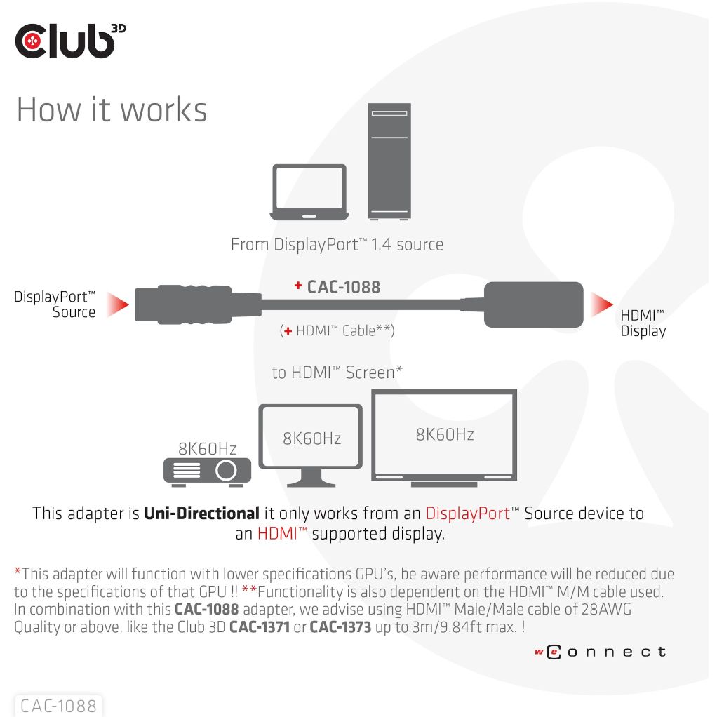 Club3D Adapter DisplayPort 1.4 > HDMI HDR 8K60Hz aktiv retail