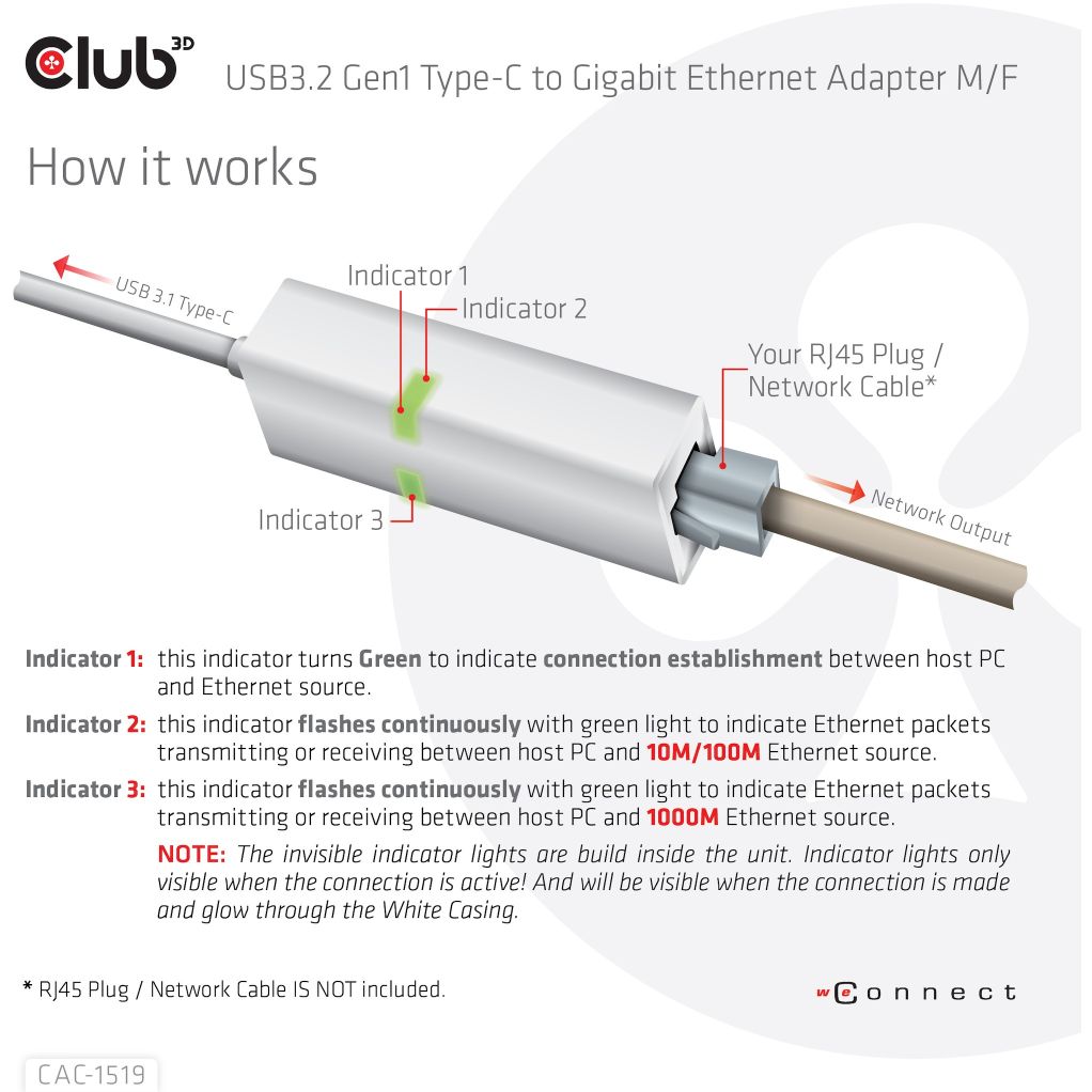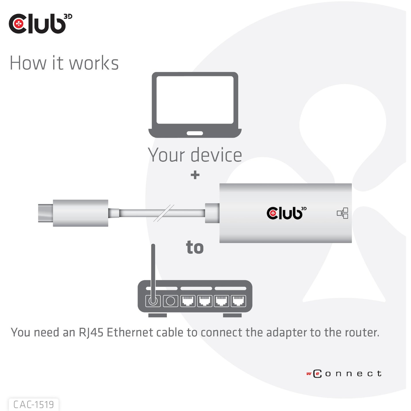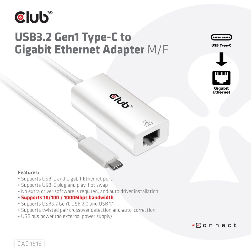 Club3D Adapter USB 3.2 Typ C > RJ45 Gigabit LAN St/Bu