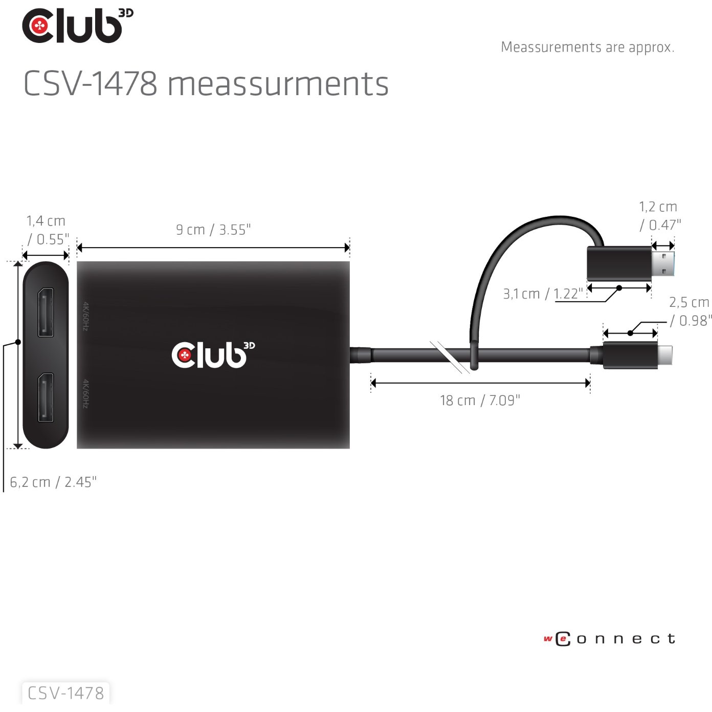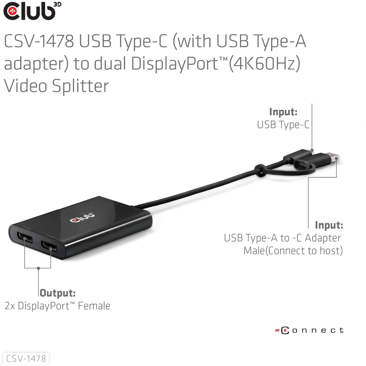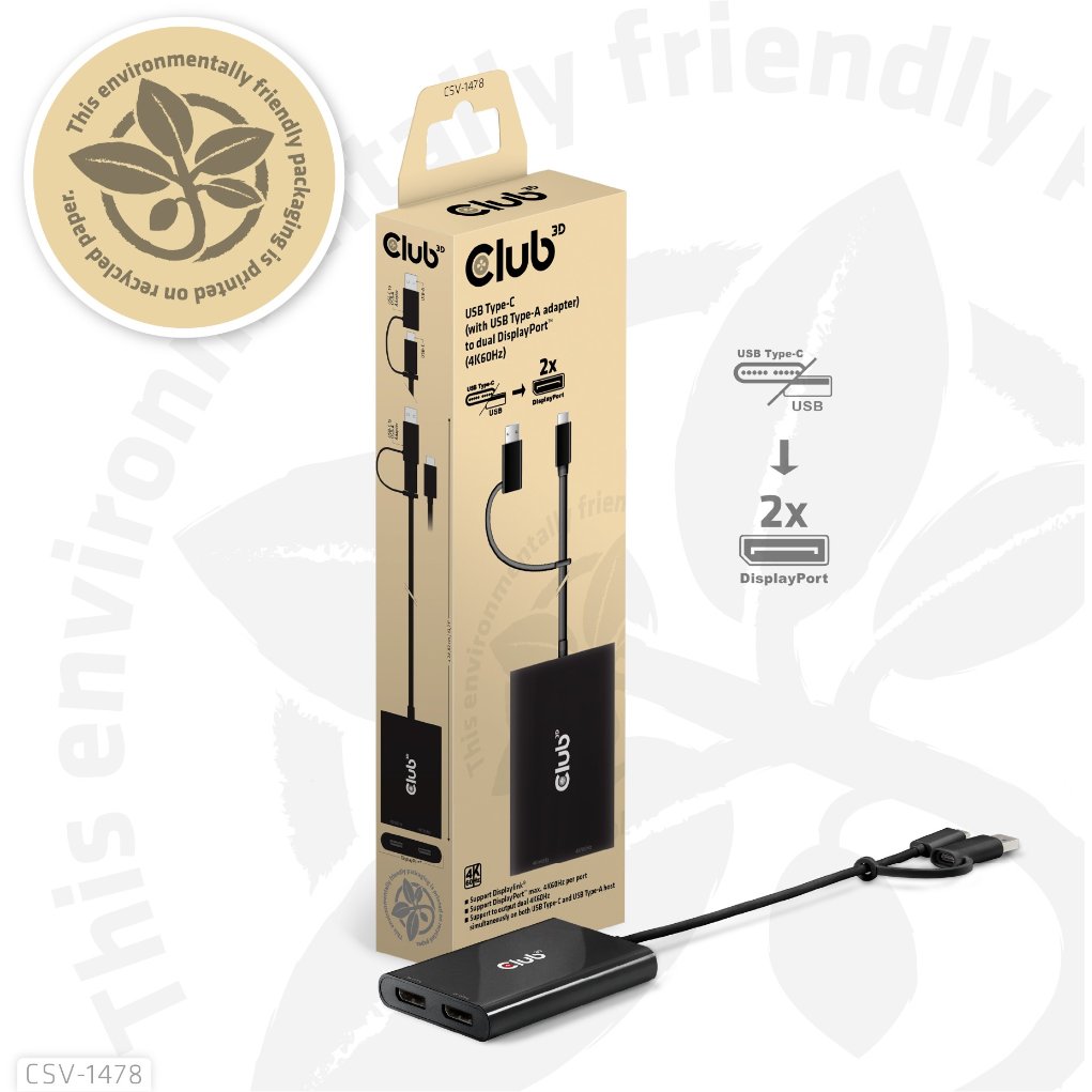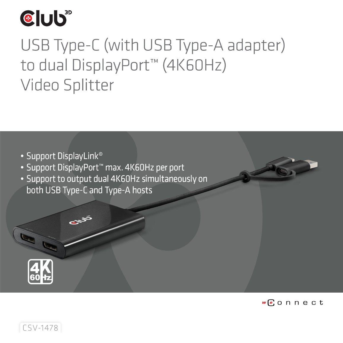 Club3D Adapter USB-C (USB A Adapter) > 2x DP 4K@60Hz St/Bu