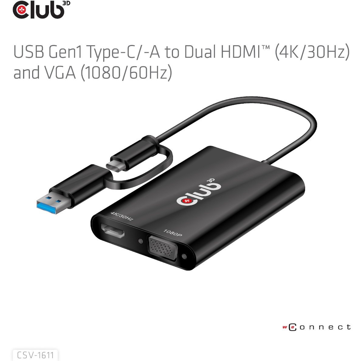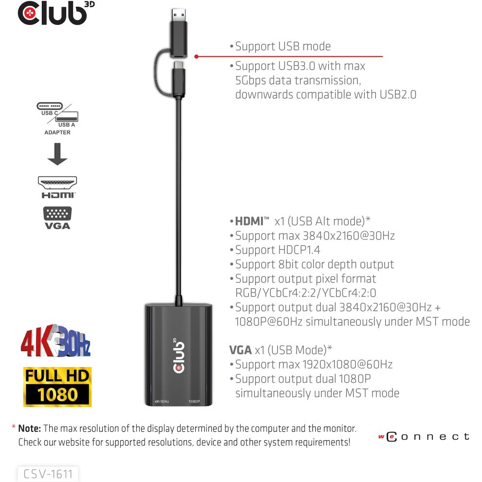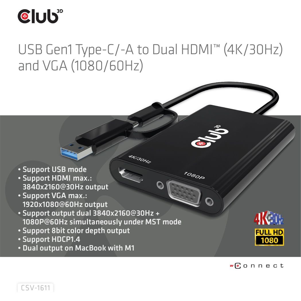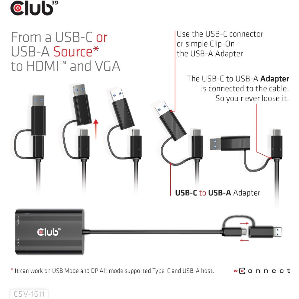 Club3D Adapter USB Typ C/A > HDMI / VGA St/Bu