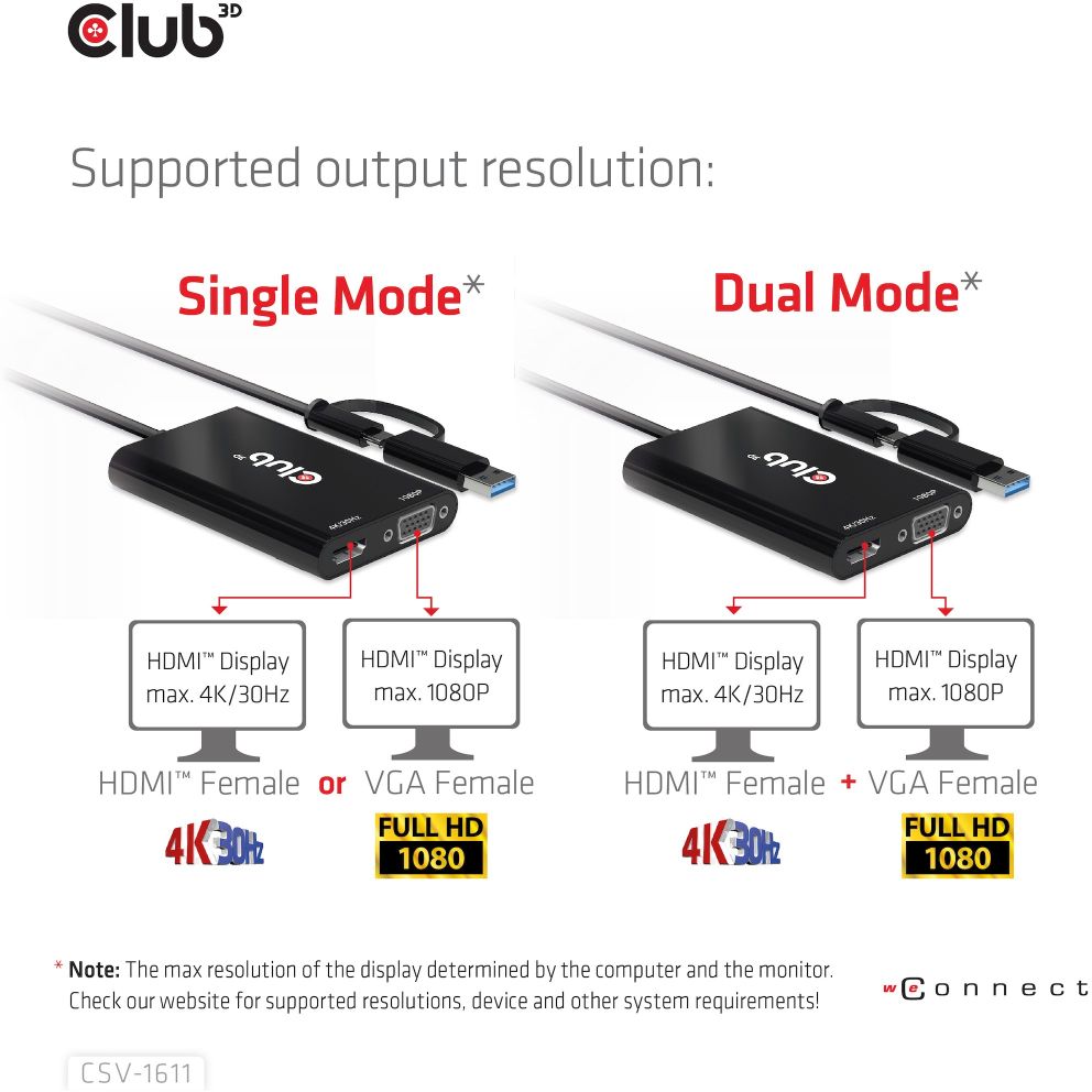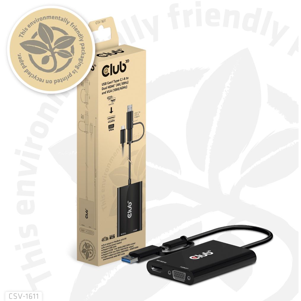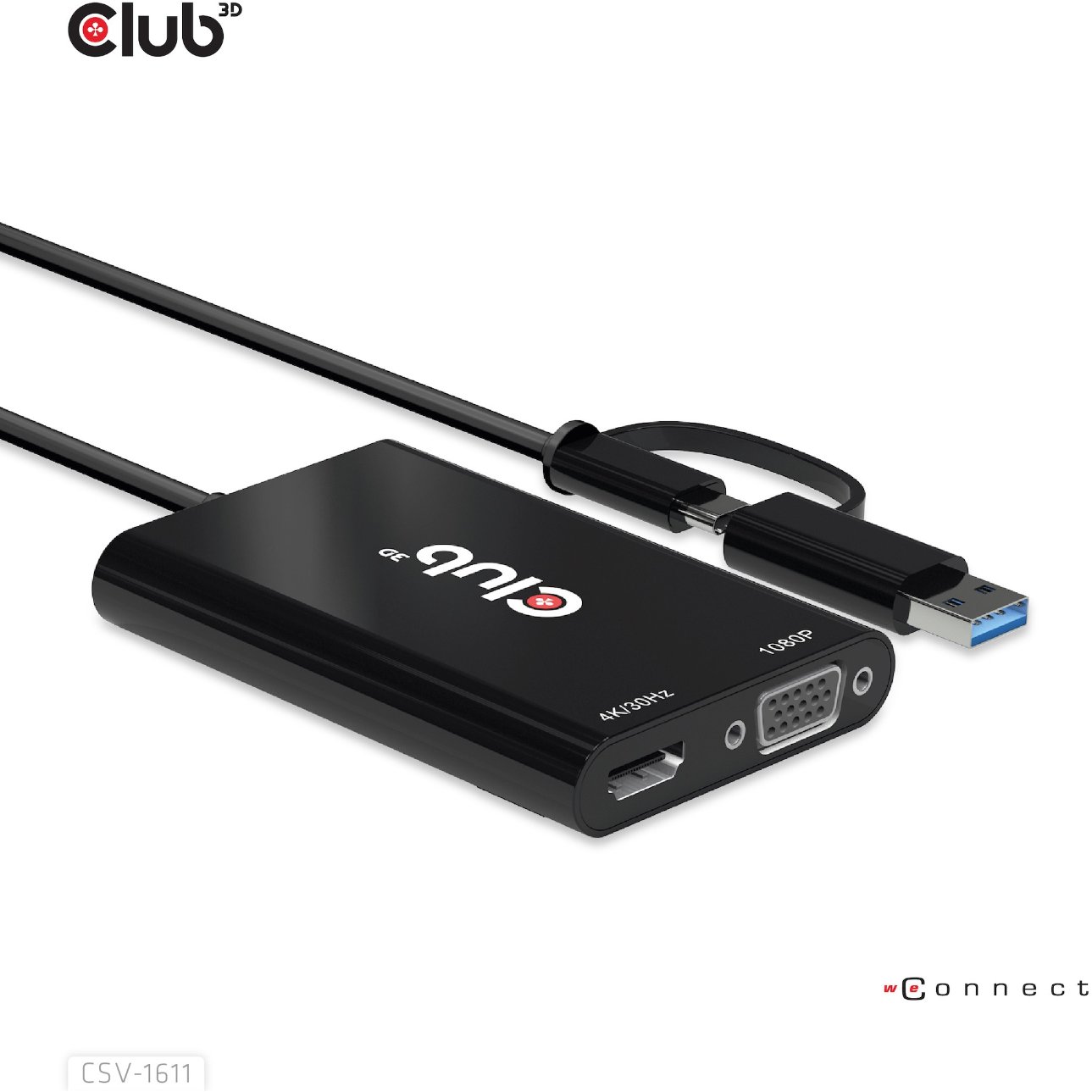 Club3D Adapter USB Typ C/A > HDMI / VGA St/Bu