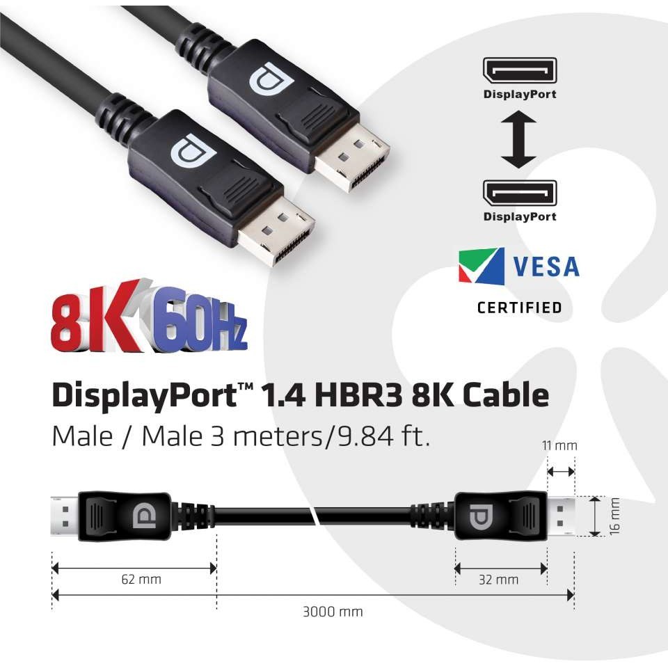 Club3D DisplayPort-Kabel 1.4 HBR3 32.4Gb/s 3m 8K60Hz St/St retail