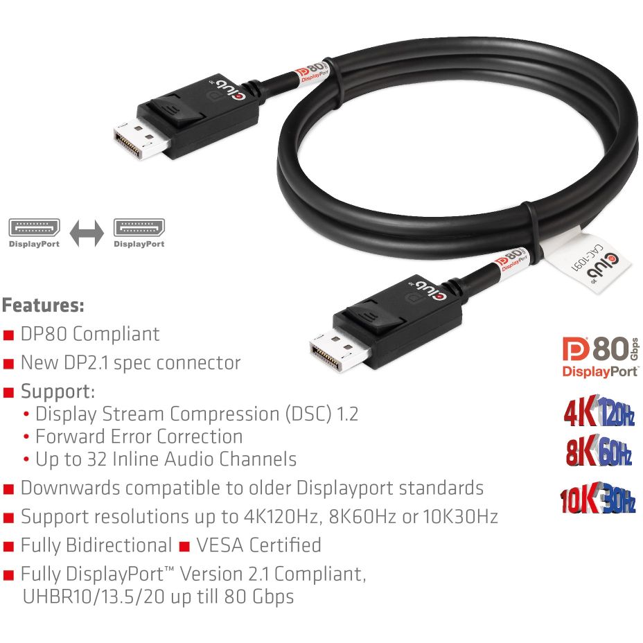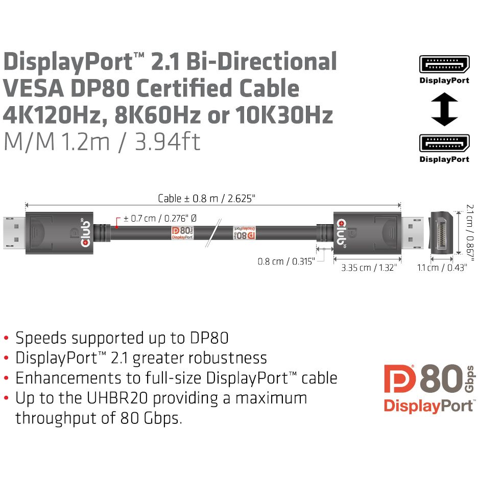 Club3D DP-Kabel 2.1 DP80 zertifiziert 1.2m 10K/8K/4K St/St retail