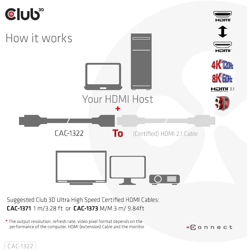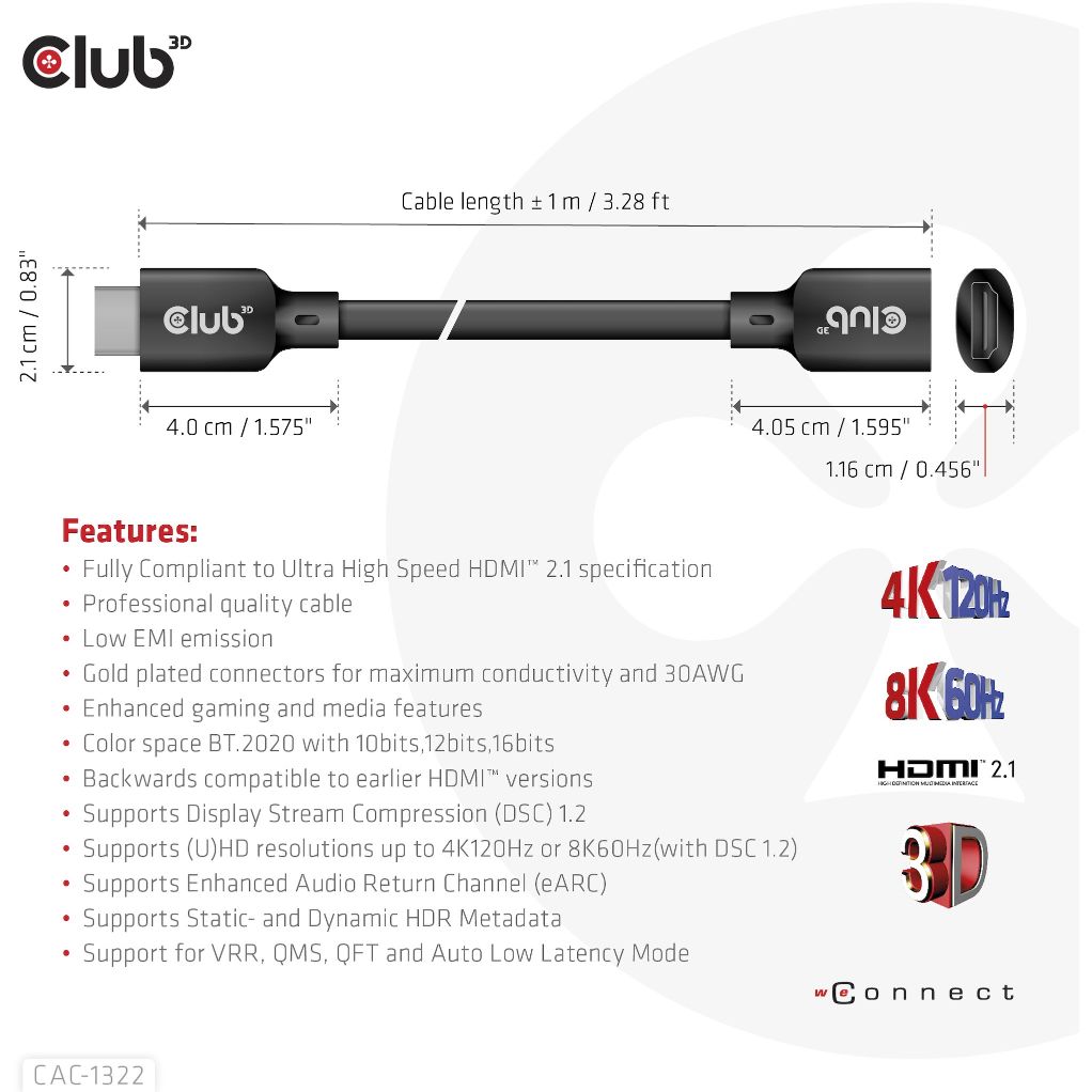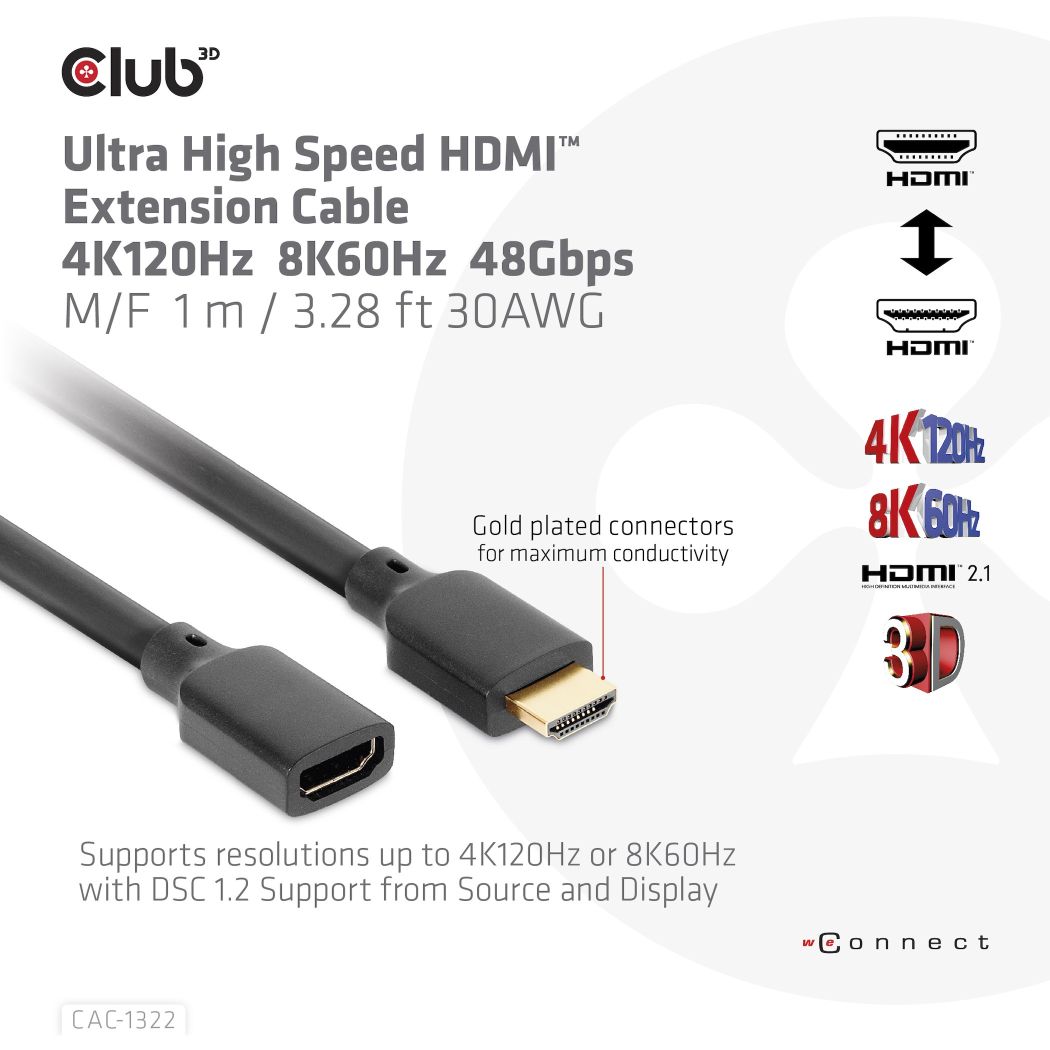 Club3D HDMI-Kabel 2.1 UHD-Verlängerungskabel 1 Meter St/Bu retail