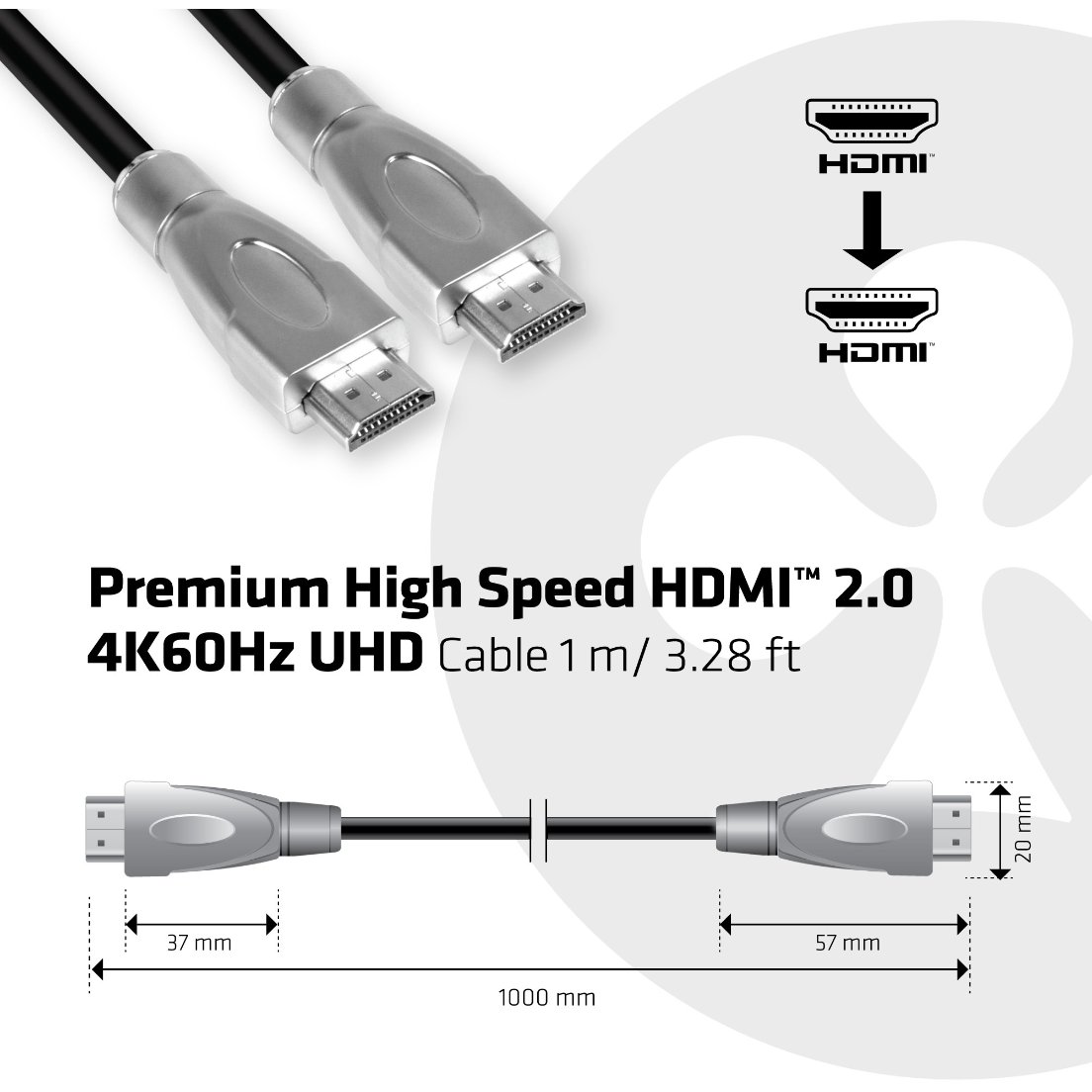 Club3D HDMI-Kabel A -> A 2.0 High Speed 4K60Hz UHD 1 Meter retail