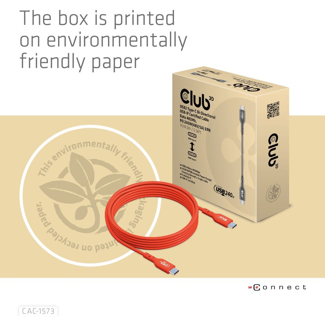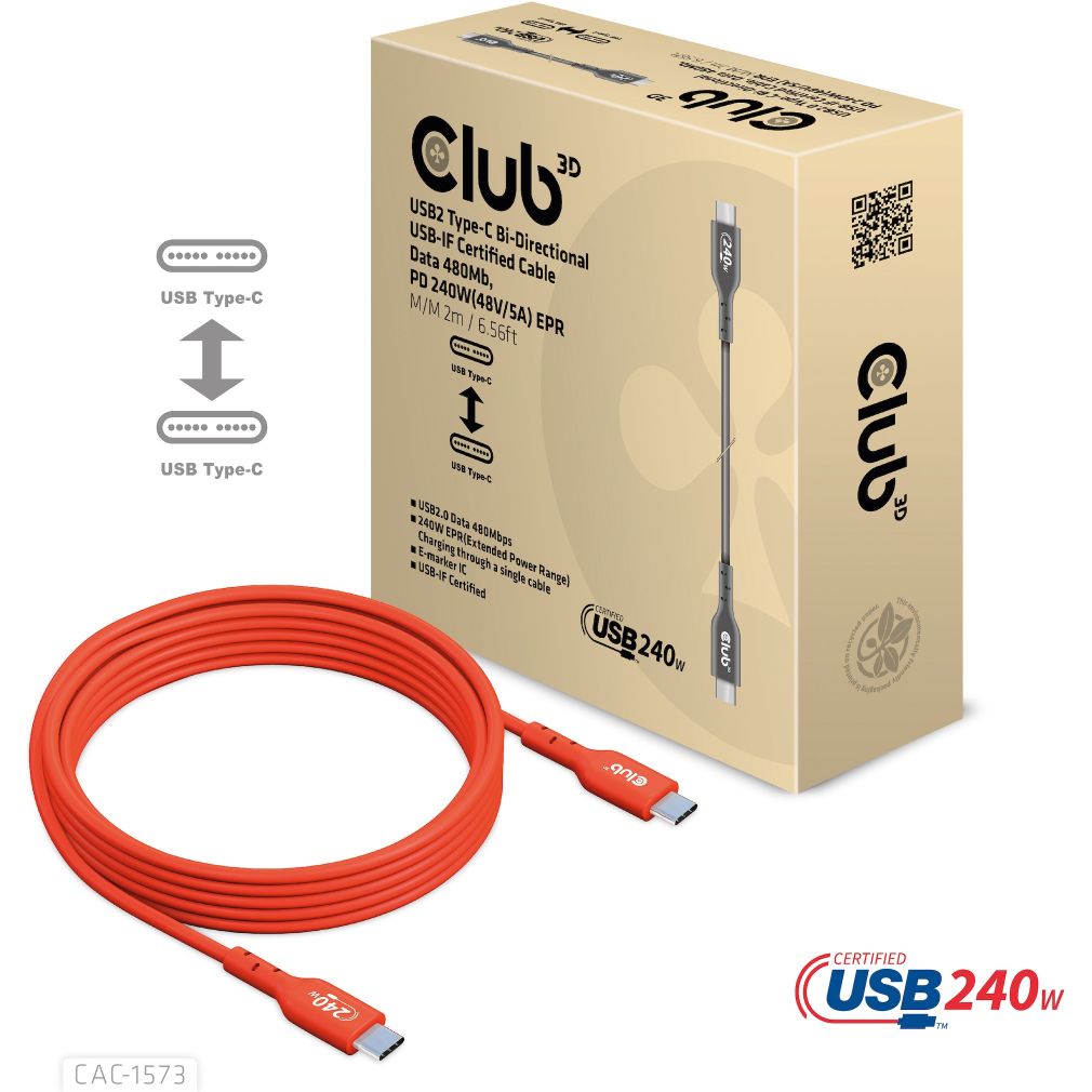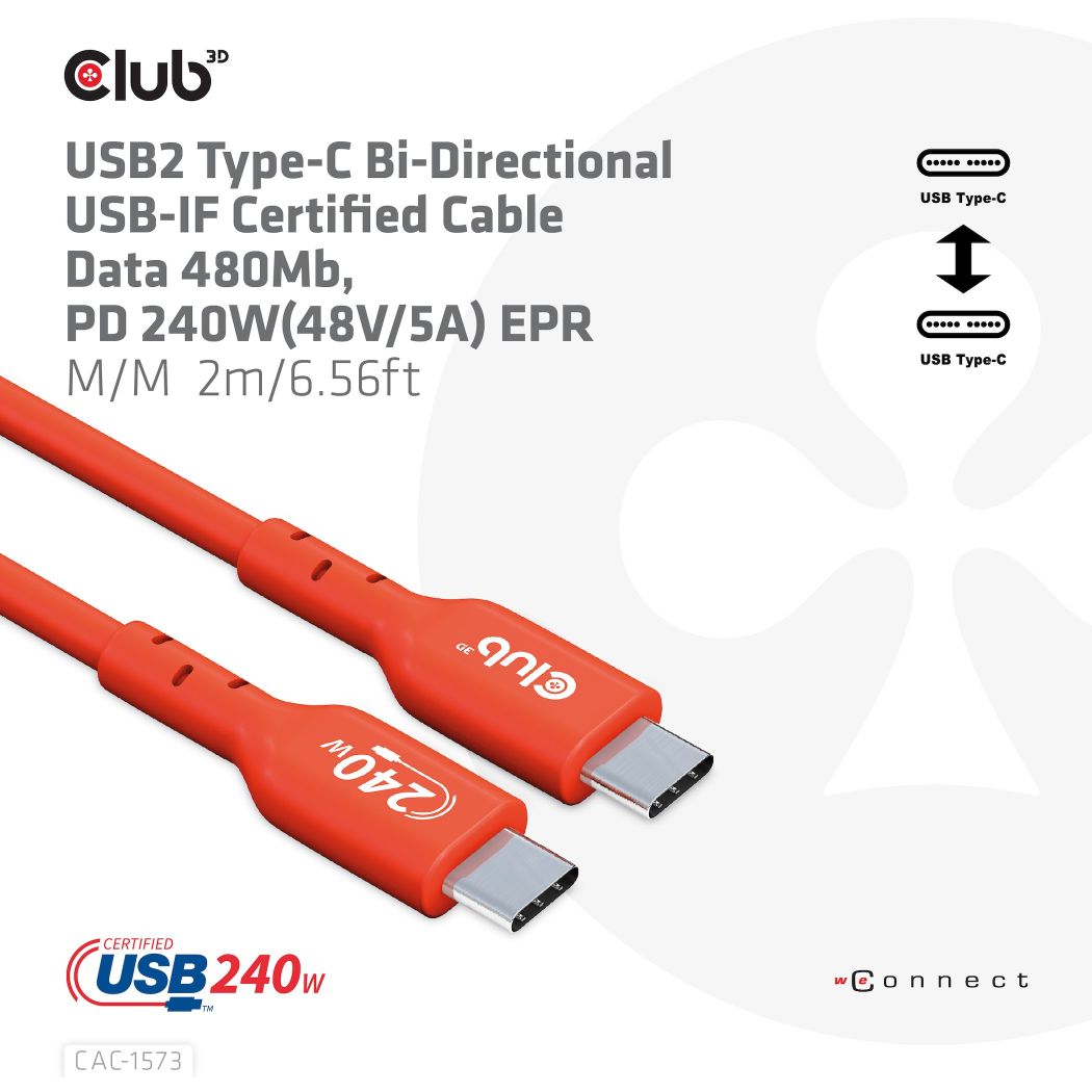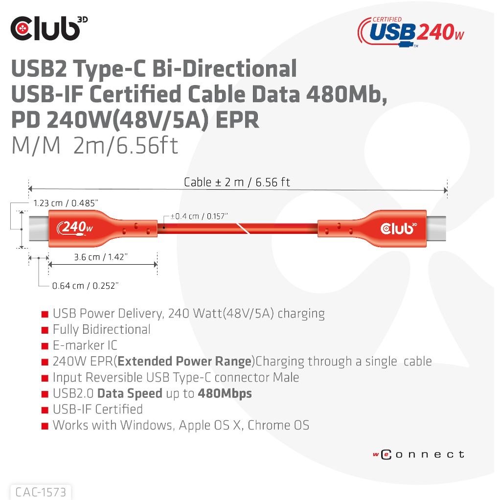 Club3D Kabel USB 2 Typ C PD 240W / 480Mb 2m St/St