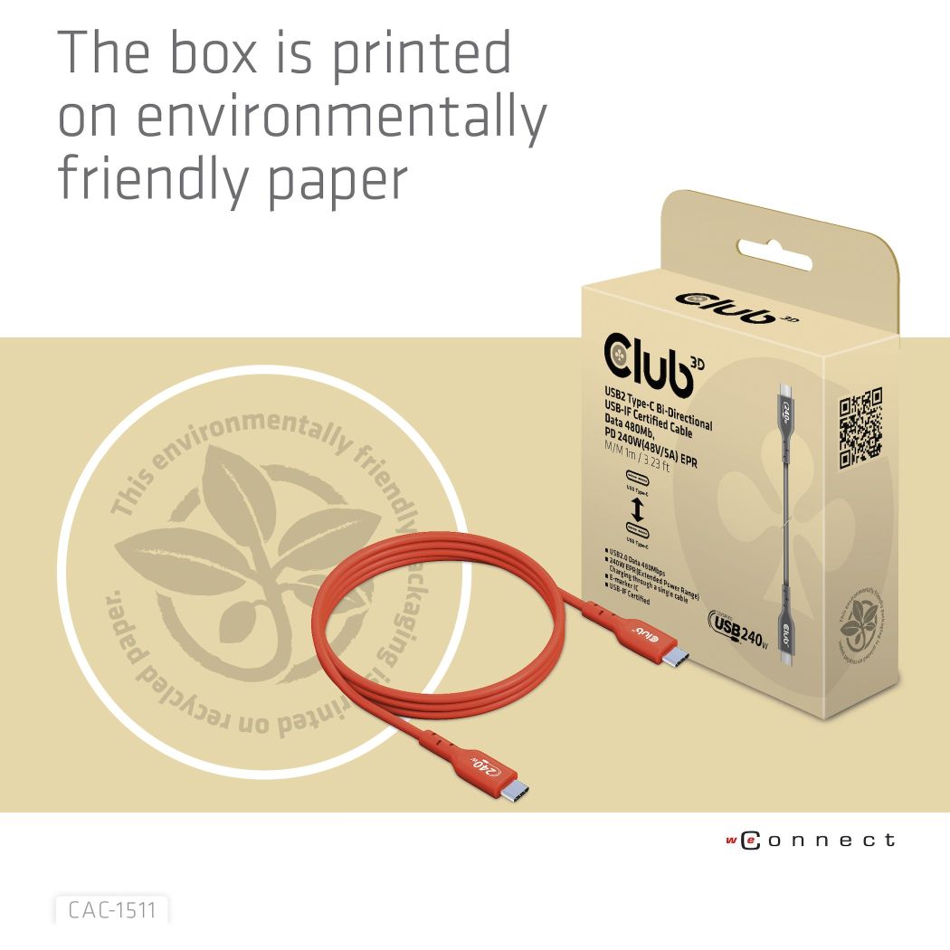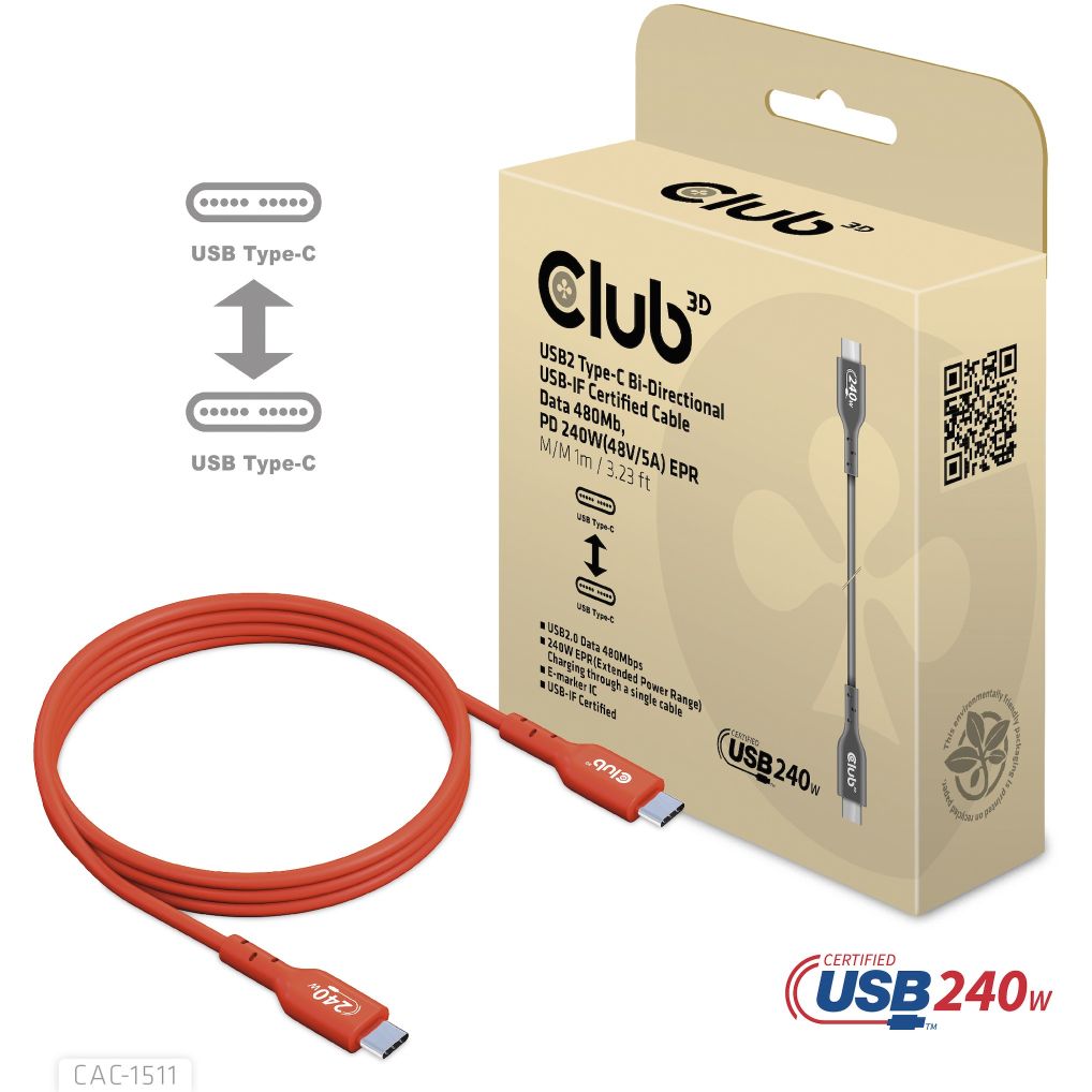 Club3D Kabel USB 2 Typ C PD 240W / 480Mb 4m St/St