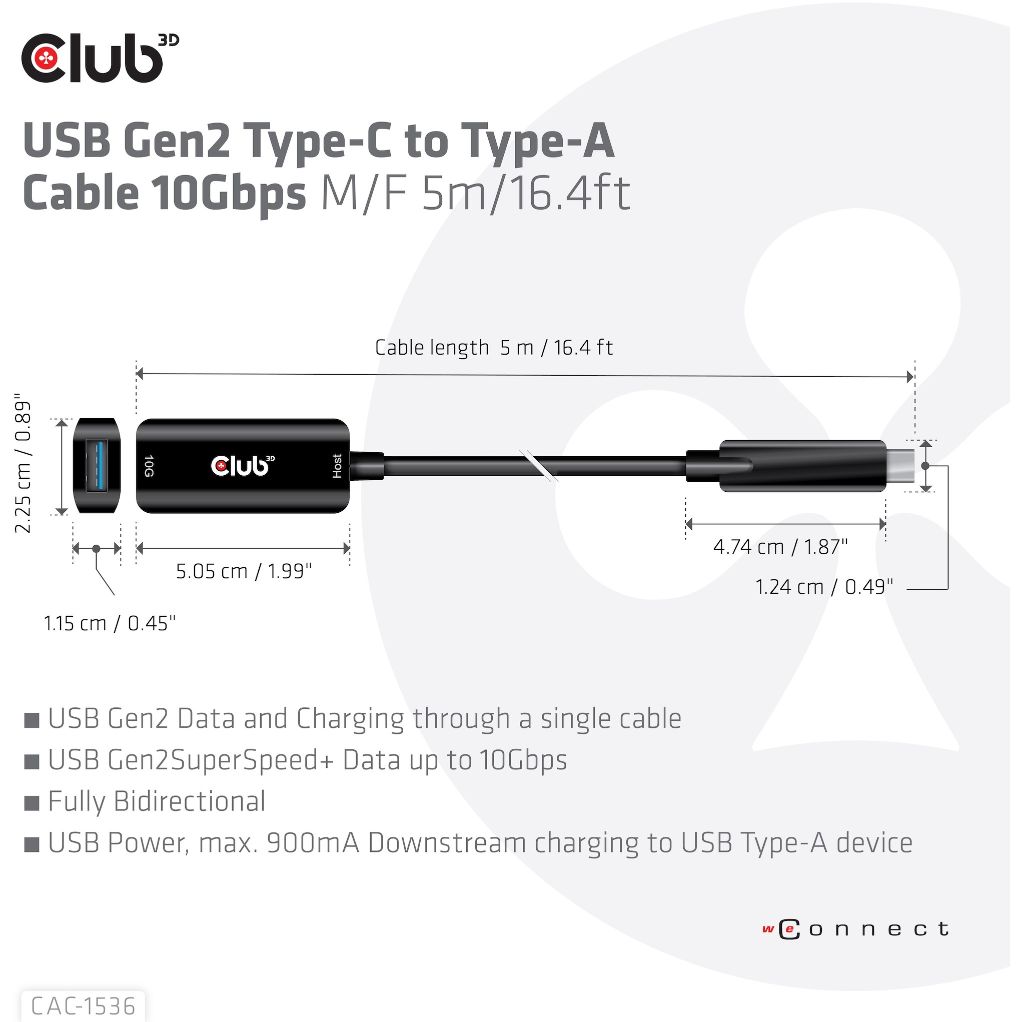 Club3D Kabel USB 3.2 Typ C USB Typ A 10Gbps St/Bu 5m