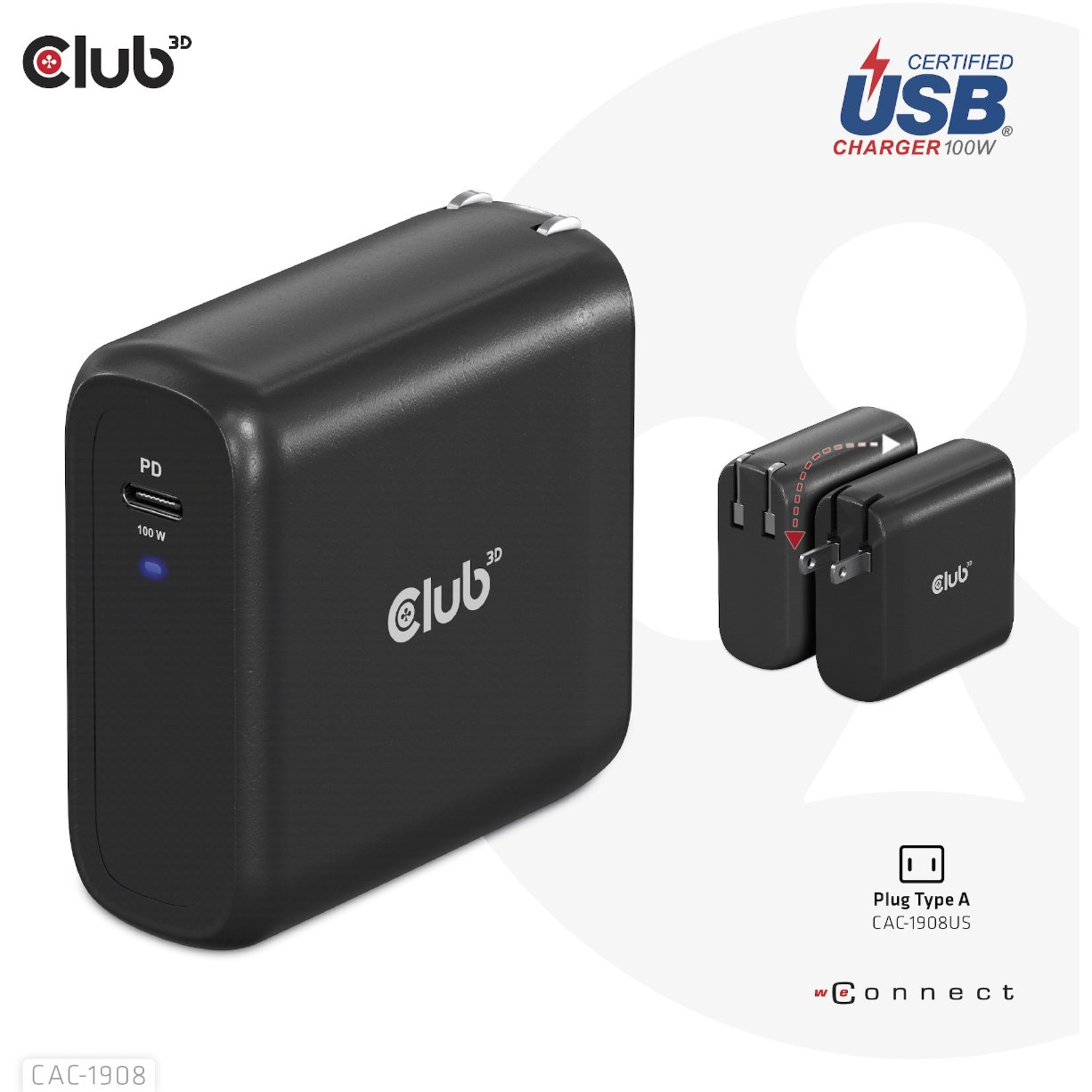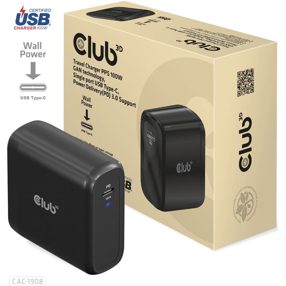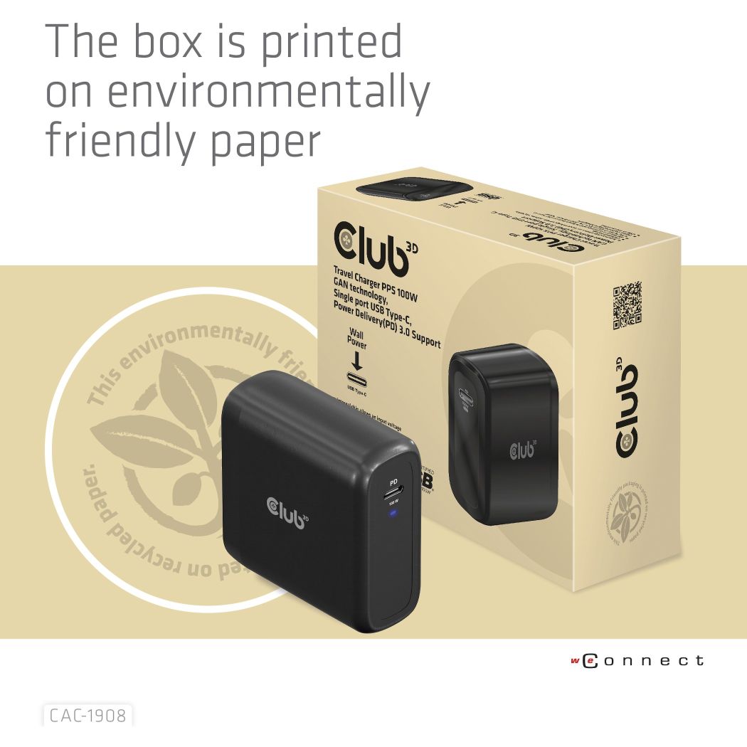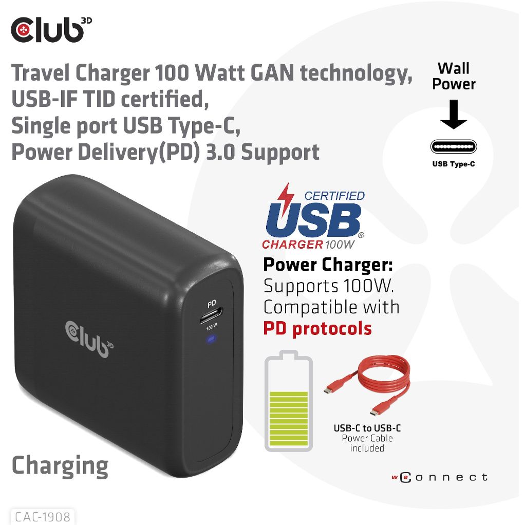 Club3D Ladegerät 1xUSB Typ C PD 100W. GaN retail