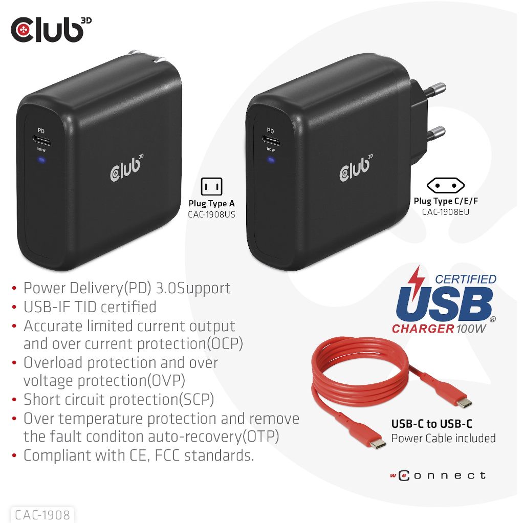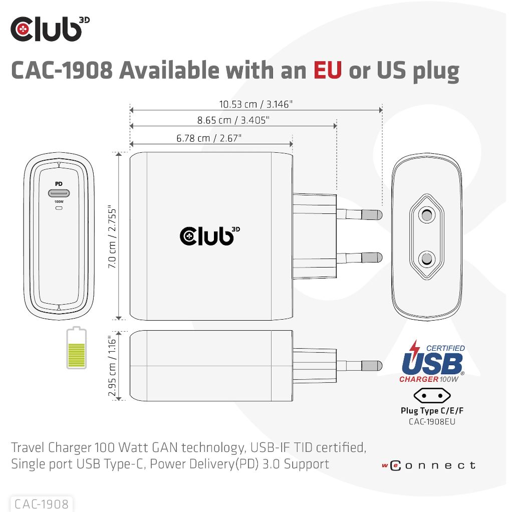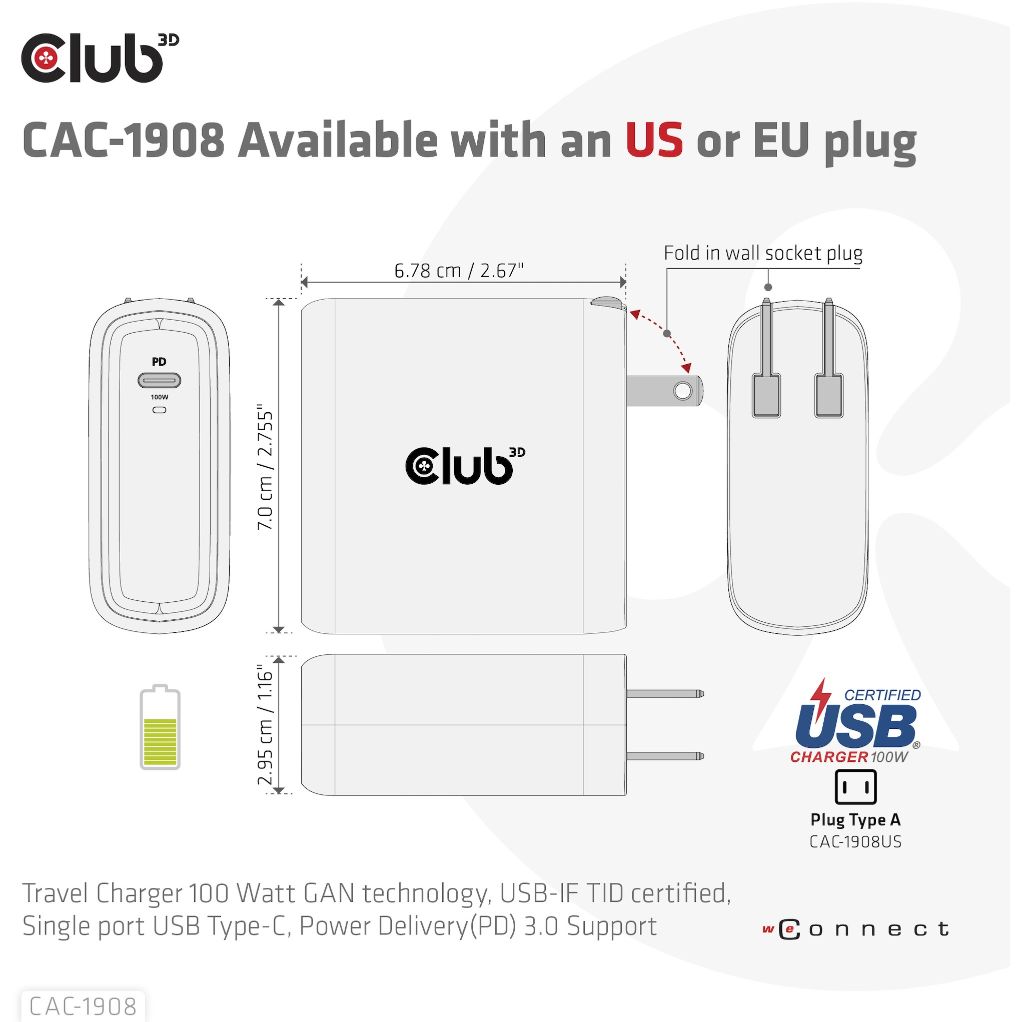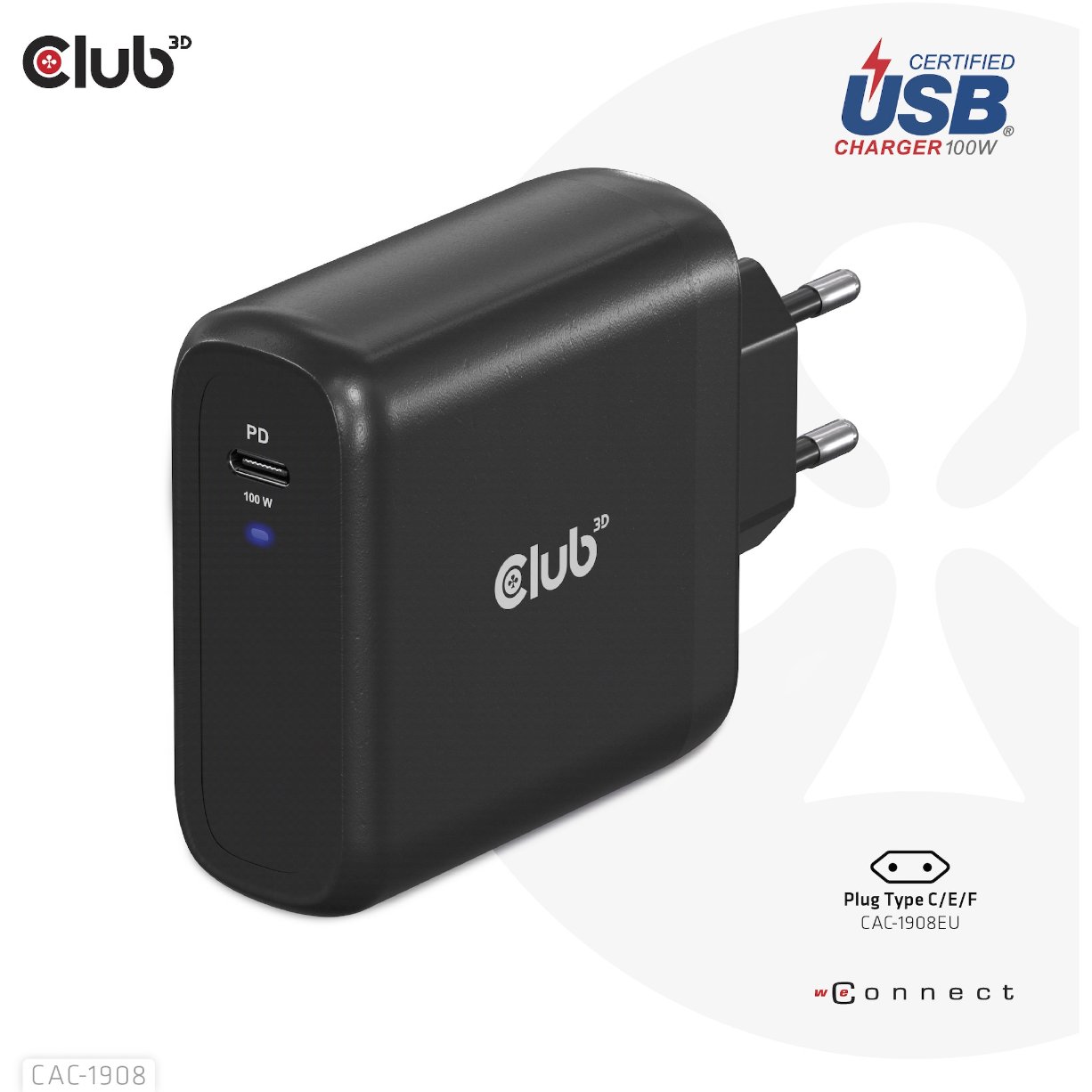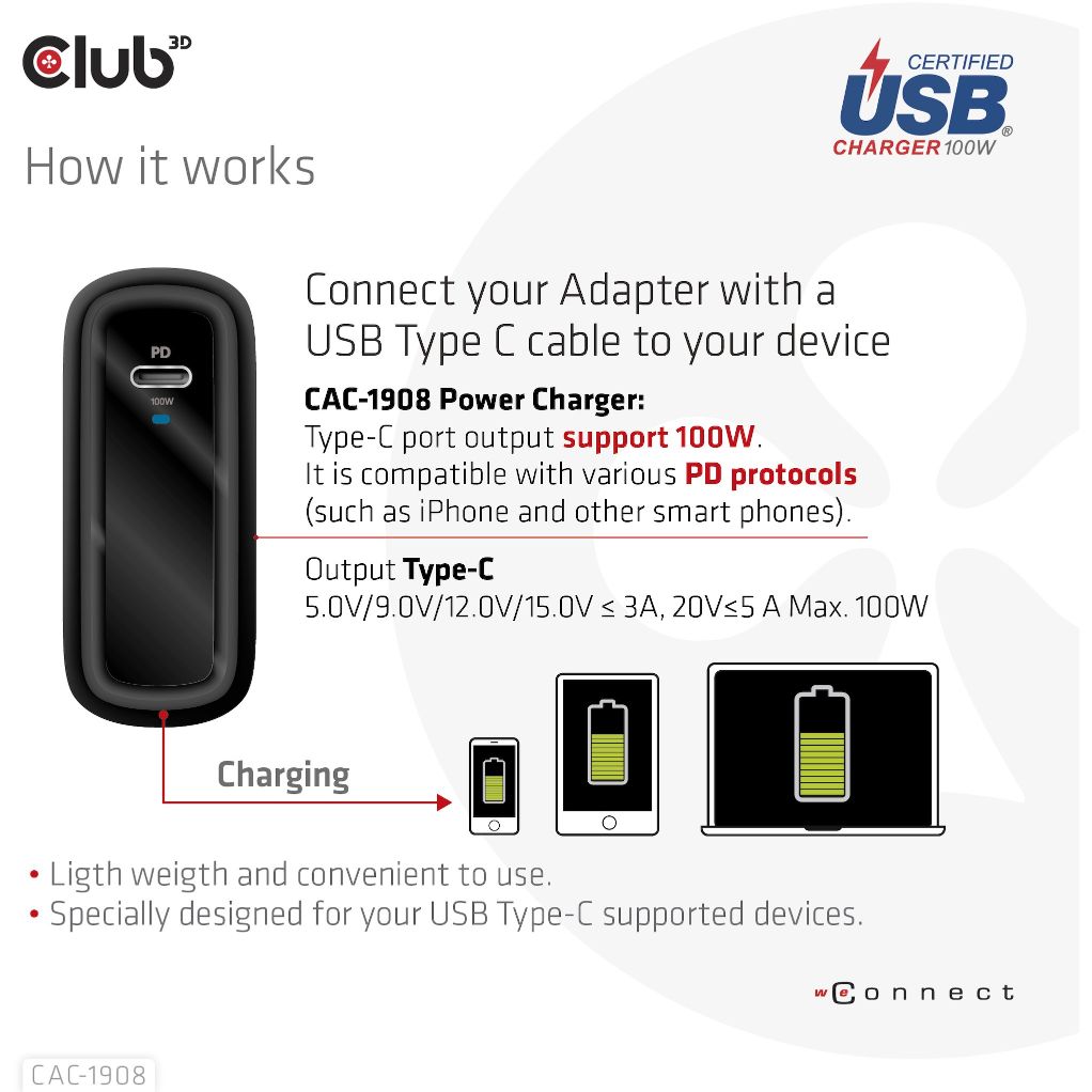 Club3D Ladegerät 1xUSB Typ C PD 100W. GaN retail