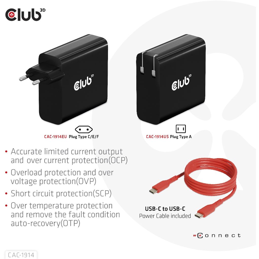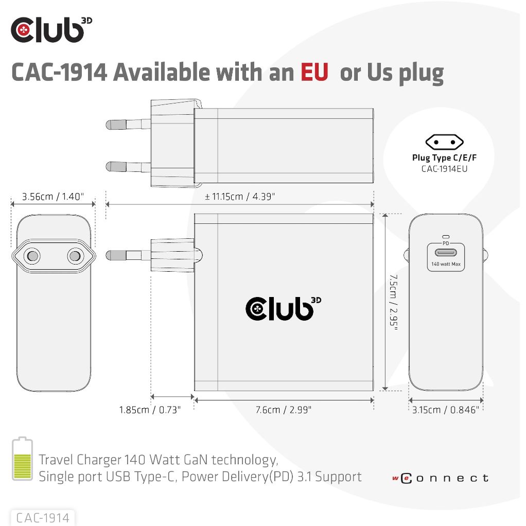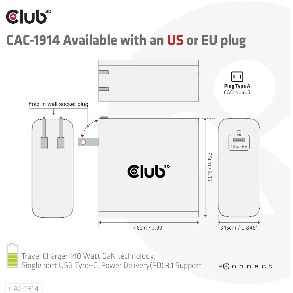 Club3D Ladegerät 1xUSB Typ C PD 140W. GaN retail