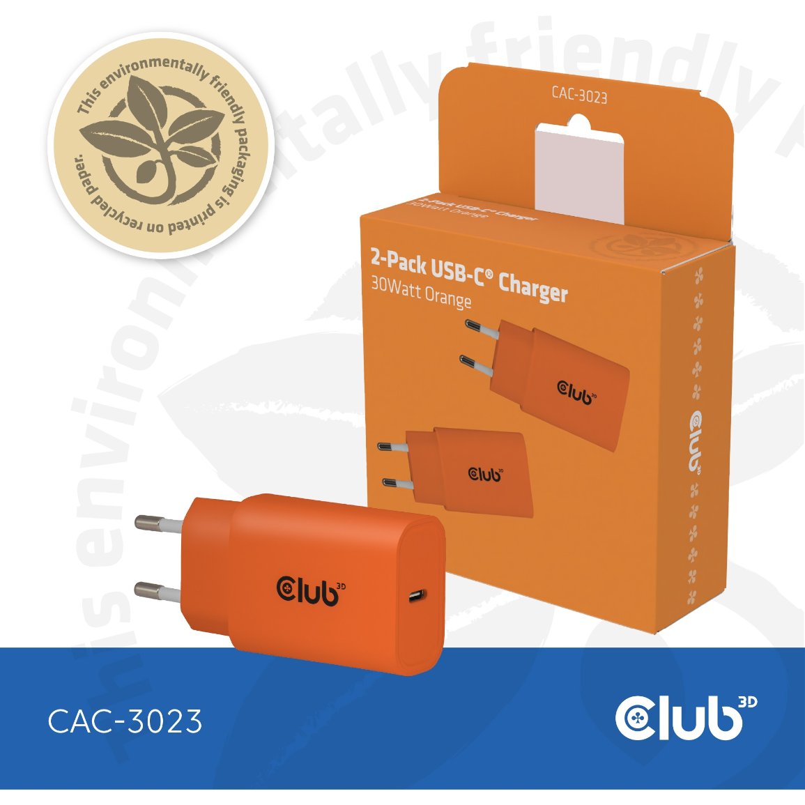 Club3D Lifestyle Ladegerät USB-C 30Watt. 2Stk orange retail