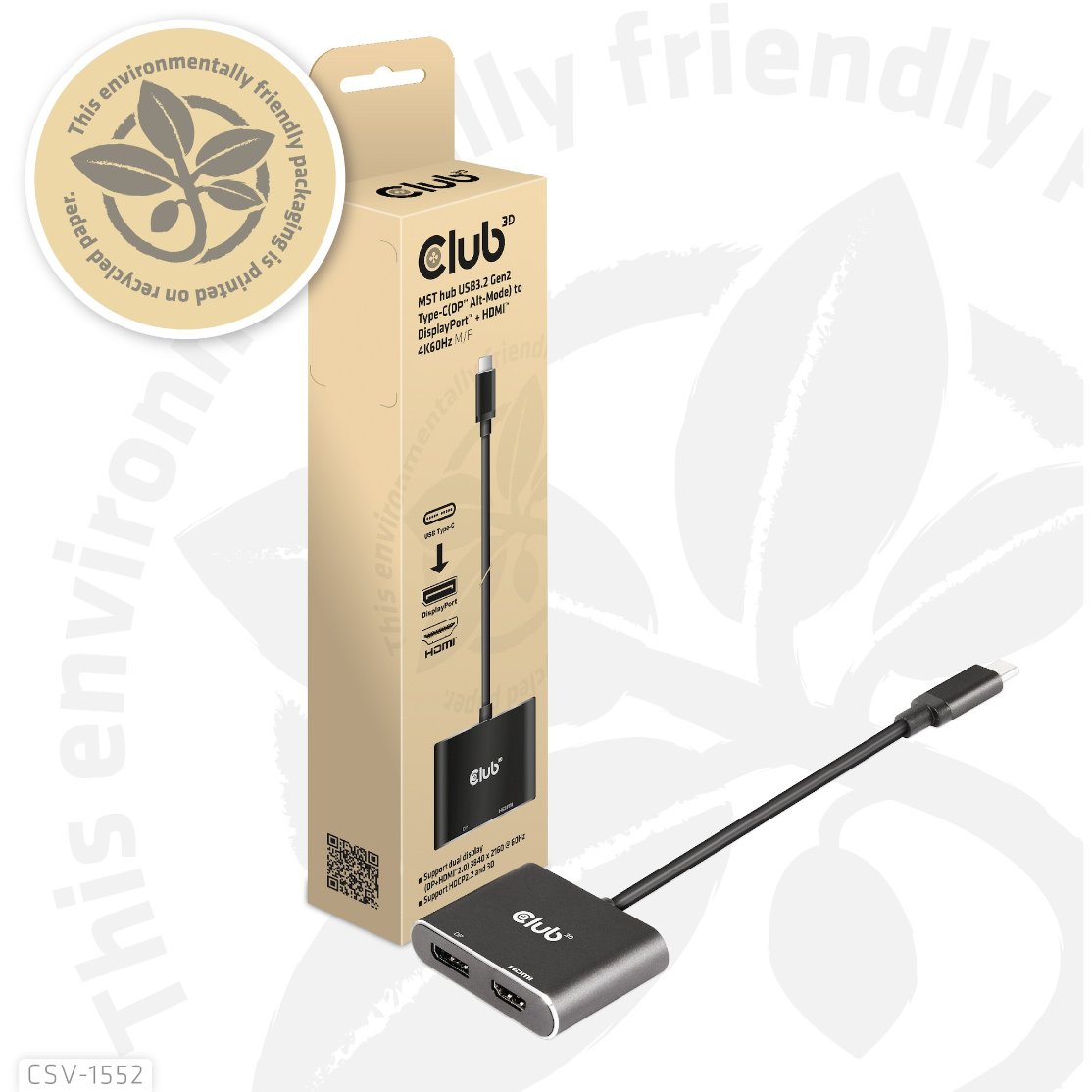 Club3D MST-Hub USB 3.2 Typ C > DP/HDMI 4K60Hz St/Bu retail