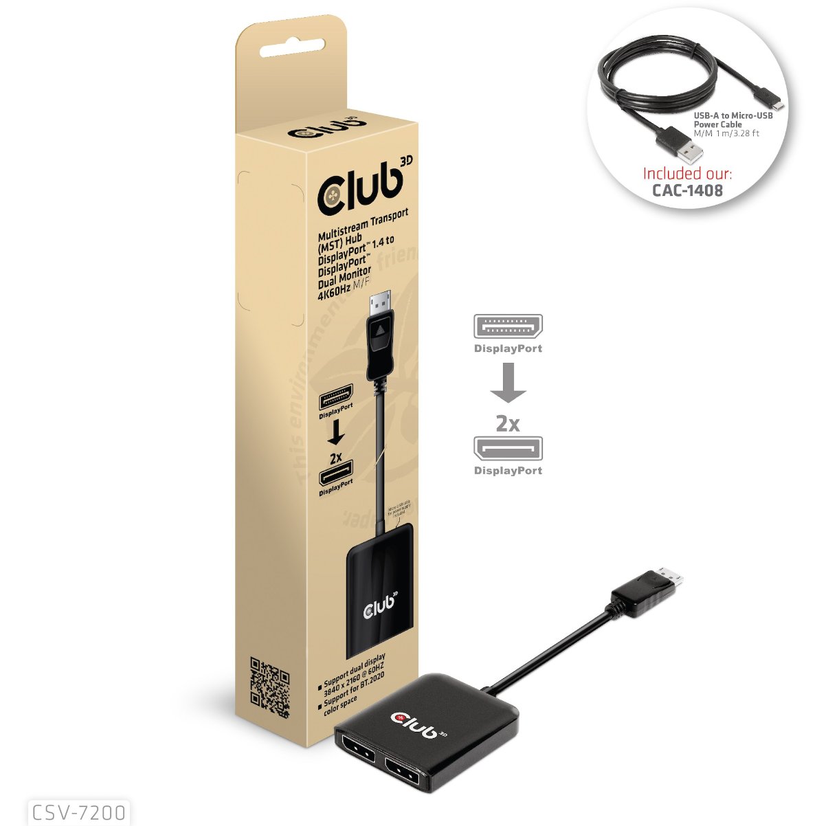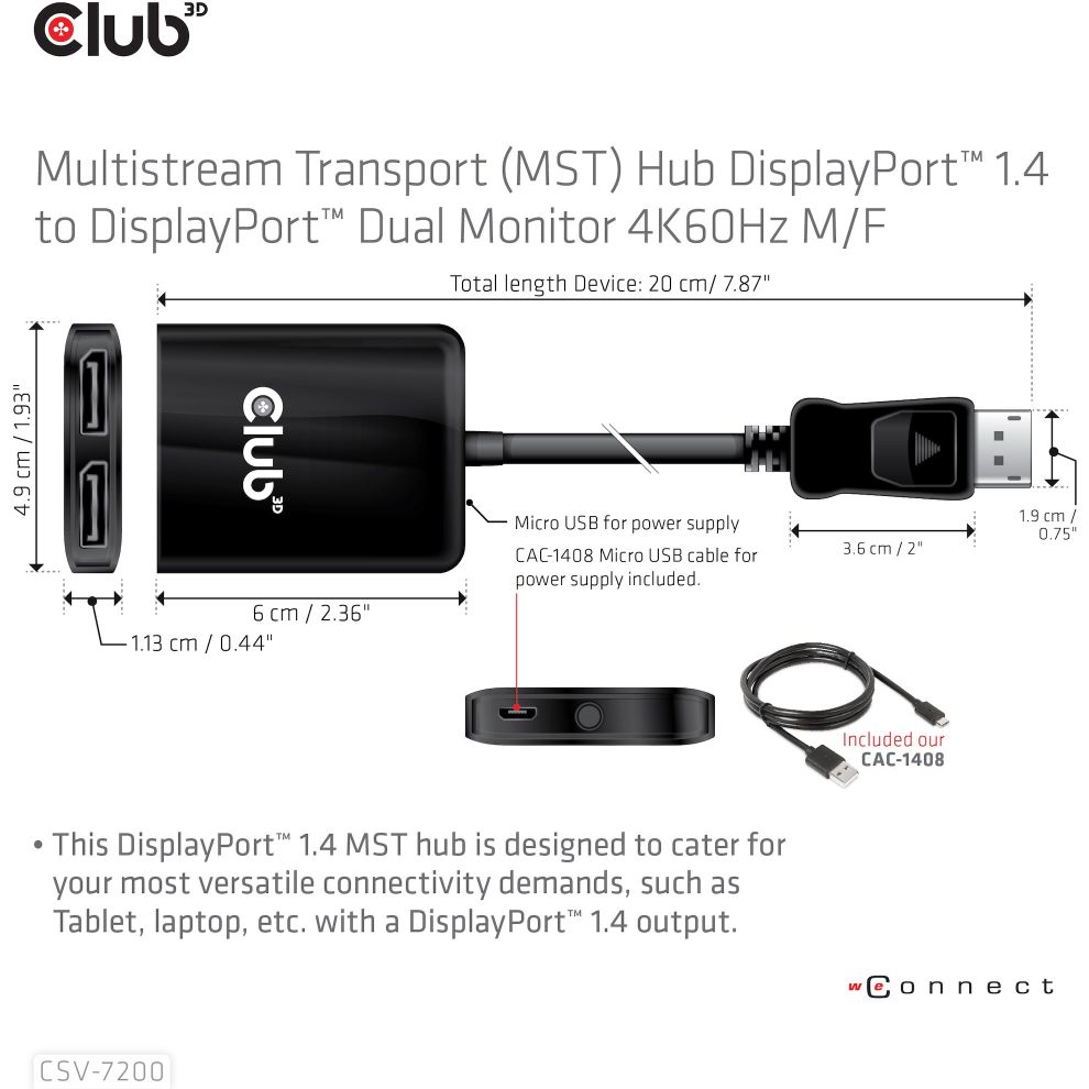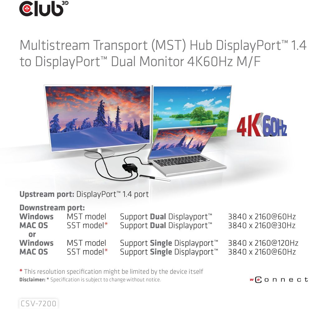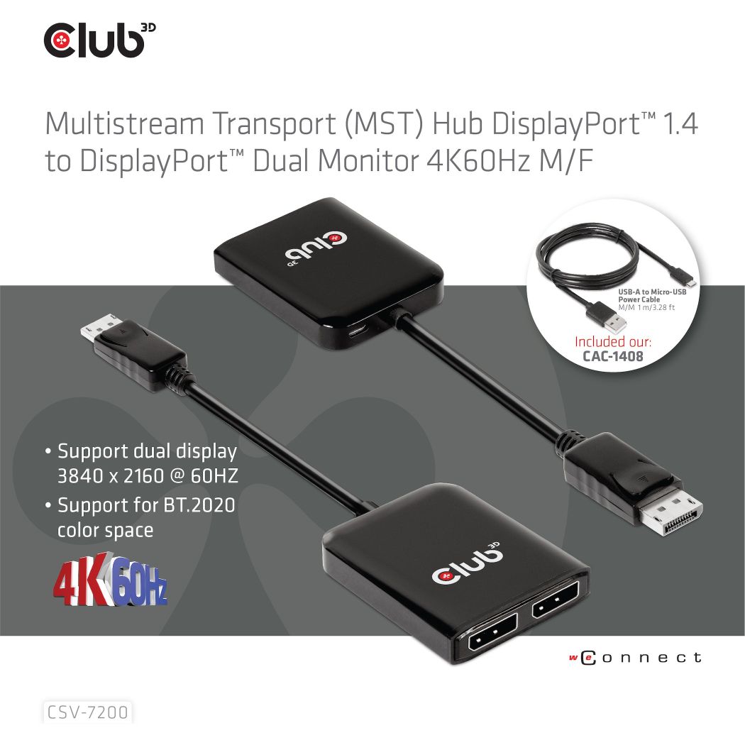 Club3D Multi Streaming Transport Hub 1xDP->DP/HDMI 4K60Hz retail