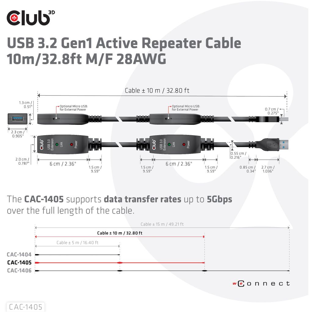 Club3D USB 3.2 A Verlängerungskabel 10m aktiv 5 Gbps St/Bu