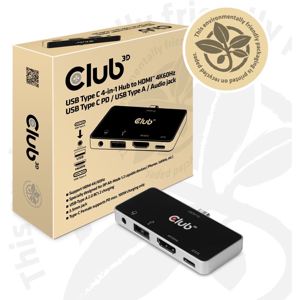 Club3D USB-C 4in1-HUB >HDMI/USB/USB-C/Audio 4K60Hz PD100W