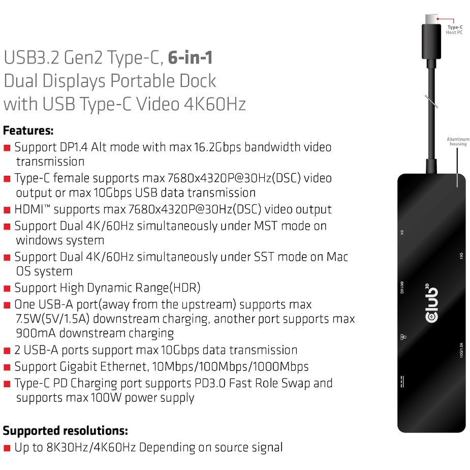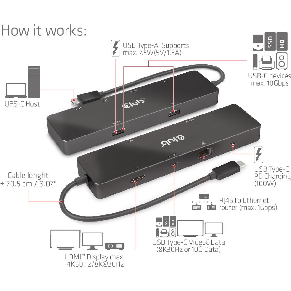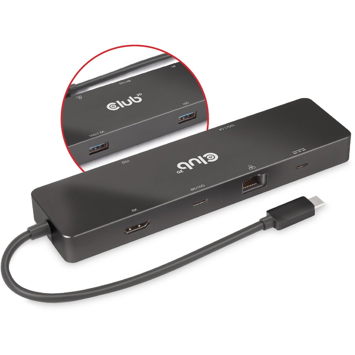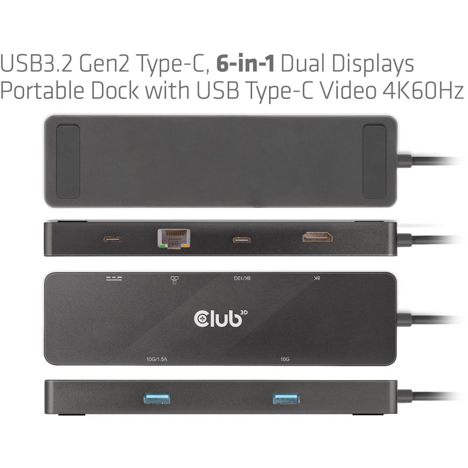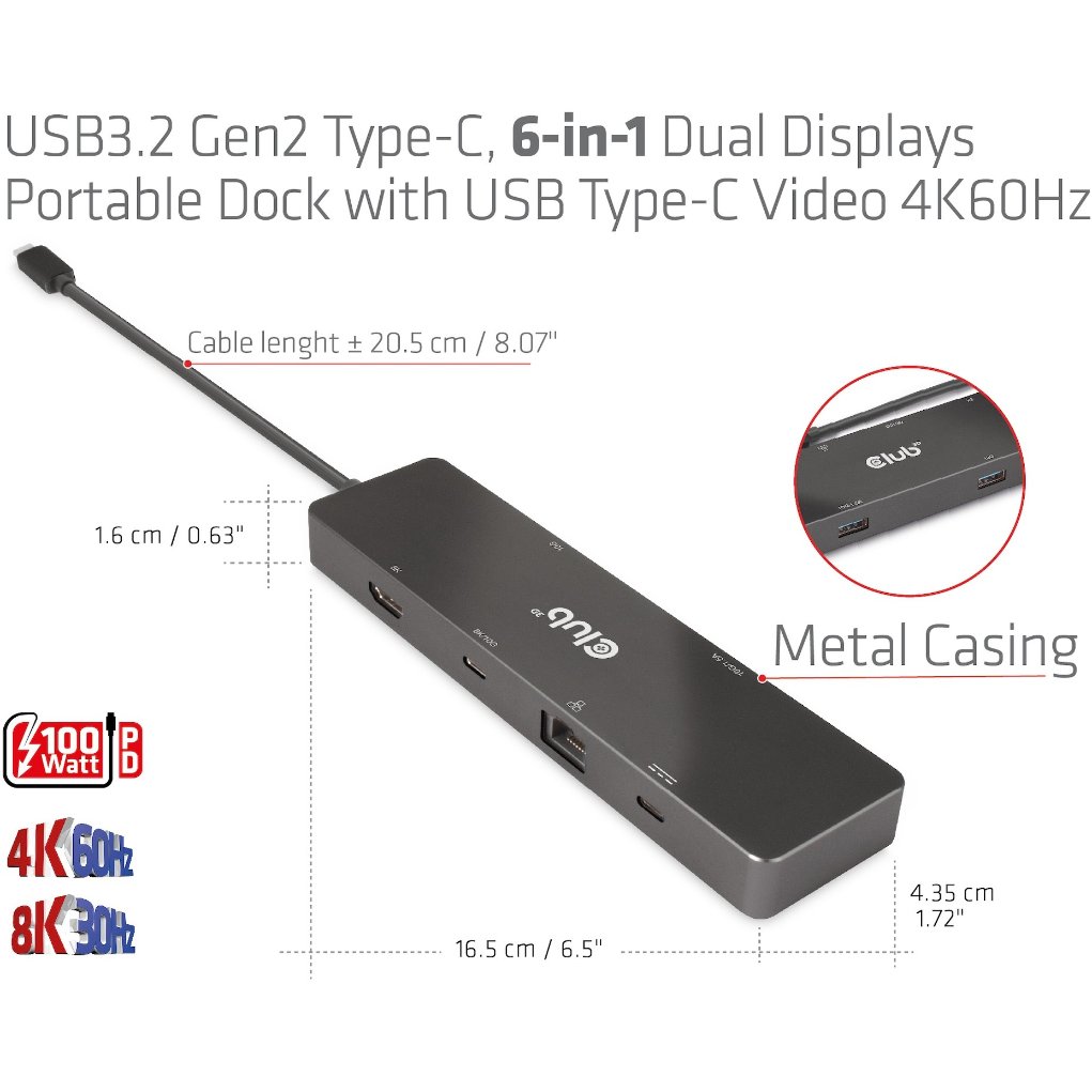 Club3D USB-C 6in1-HUB >HDMI/2xUSB-C/2xUSB/LAN 8K30Hz PD100W