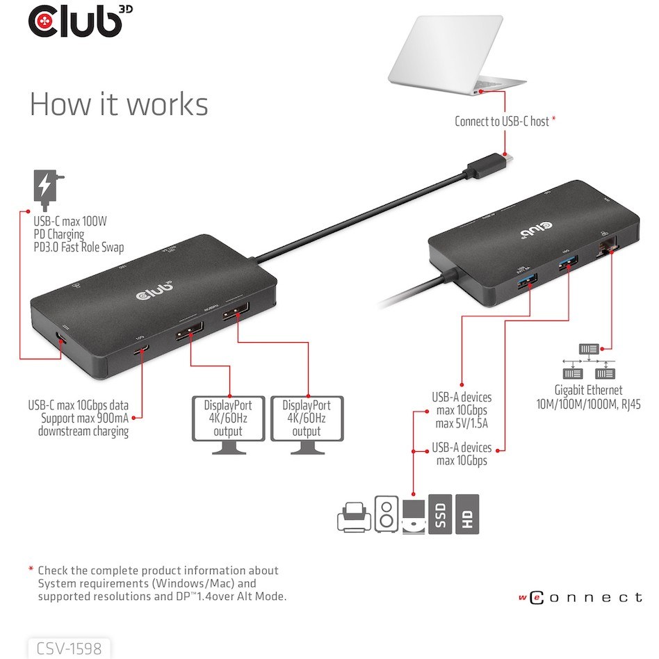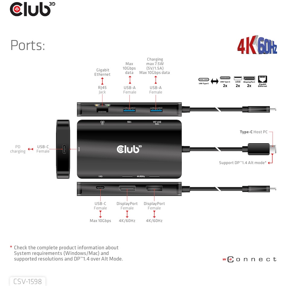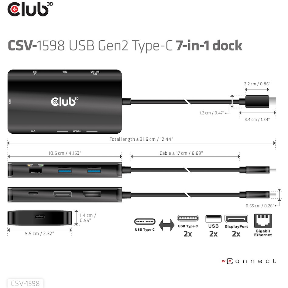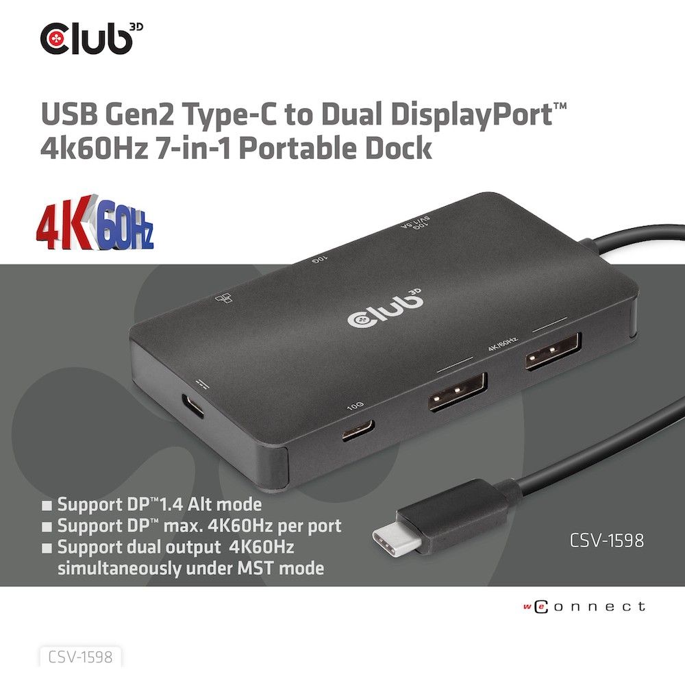 Club3D USB-C 7in1-HUB >2xDP/2xUSB/2xUSB-C/LAN 4K60Hz PD100W
