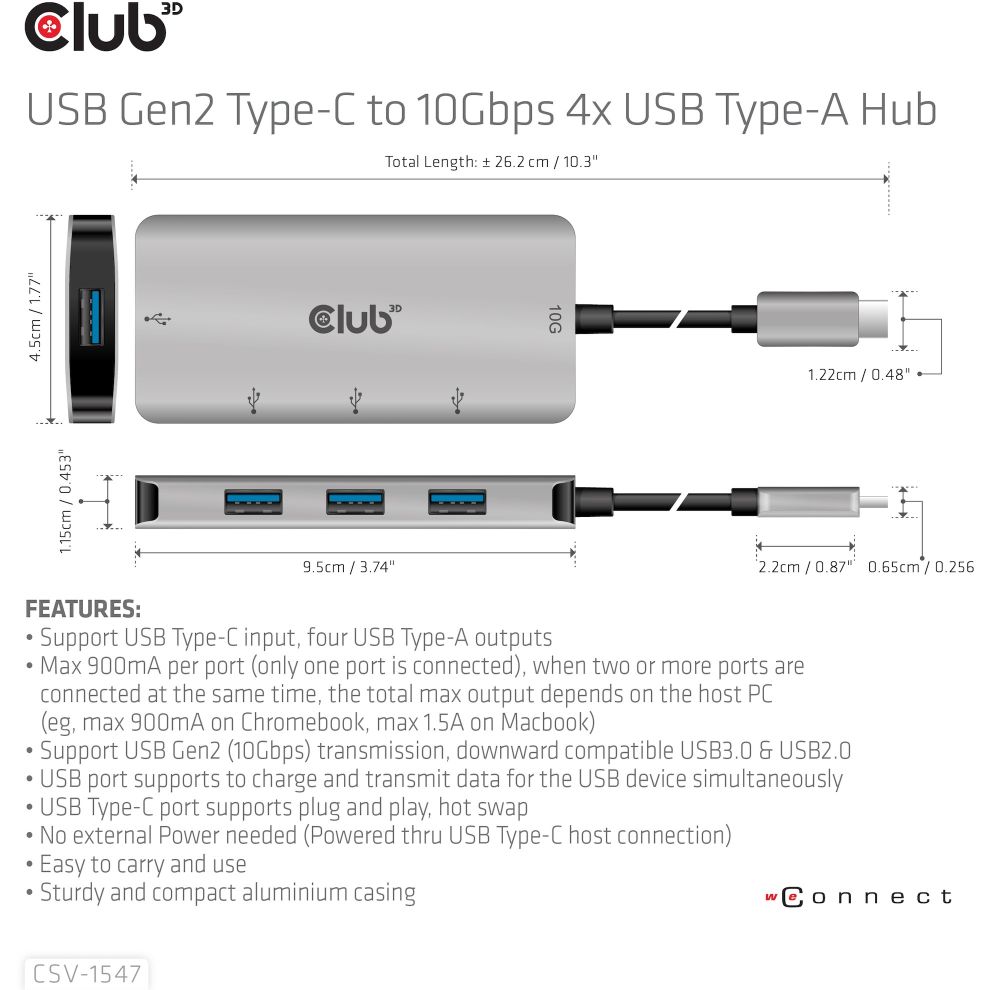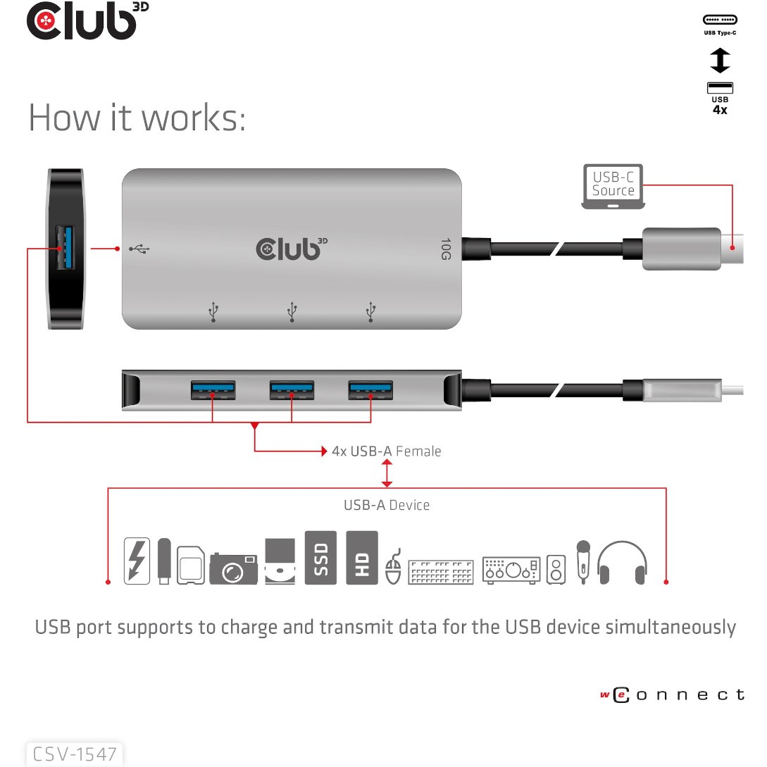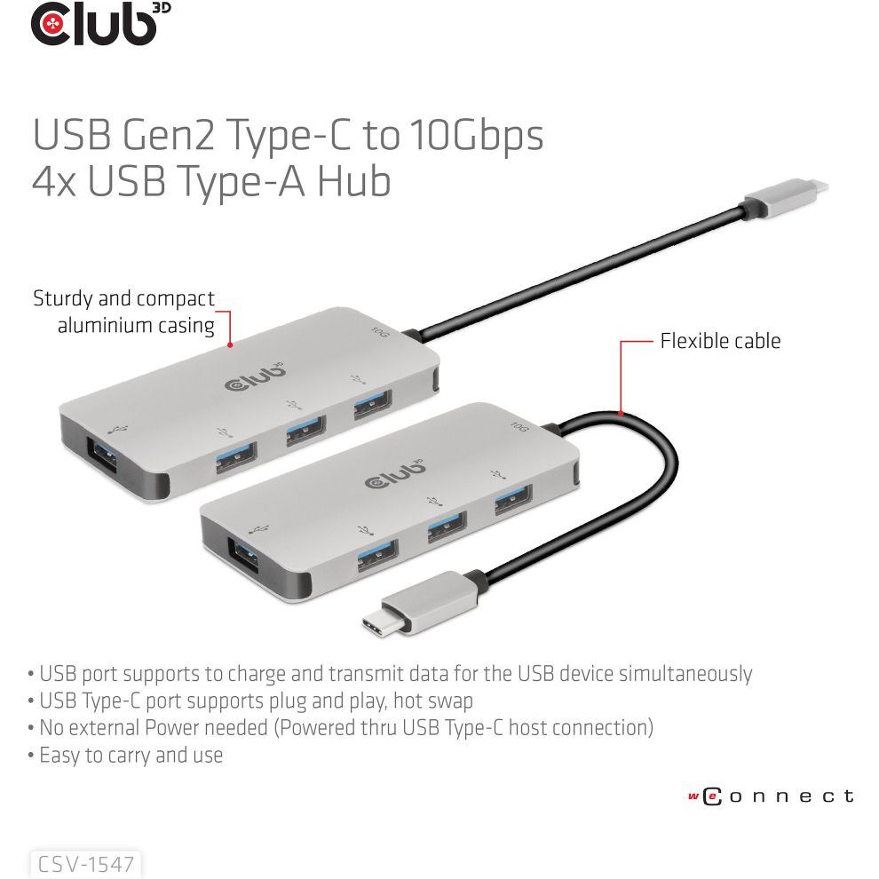 Club3D USB-Hub USB 3.1 Typ C > 4x USB 3.1 Typ A 10Gbps