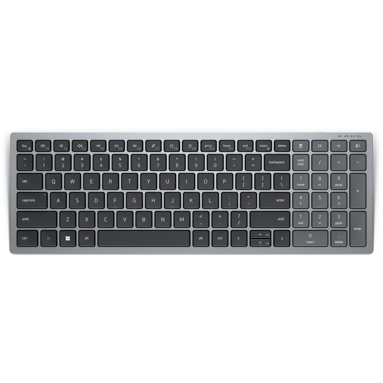 DELL Pro Plus kompakte Tastatur – KB740 – US international (QWERTY). Tastatur Formfaktor: Volle Größe (100%), Übertragungstechnik: Kabellos, Geräteschnittstelle: RF Wireless + Bluetooth, Tastatur-Switch: Scherenschalter, Tastaturaufbau: QWERTY, Empfohlene Nutzung: Büro. Produktfarbe: Grau, Schwarz