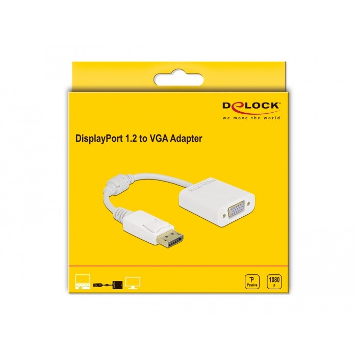 DELOCK Adapter DisplayPort 1.2 Stecker zu VGA Buchse Passiv weiss
