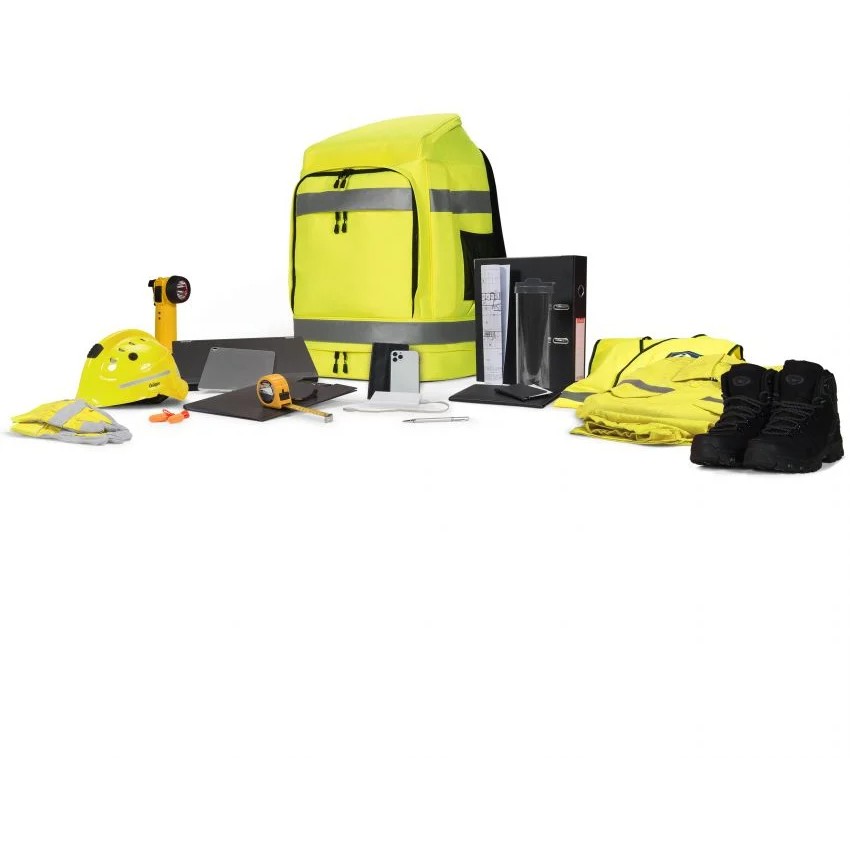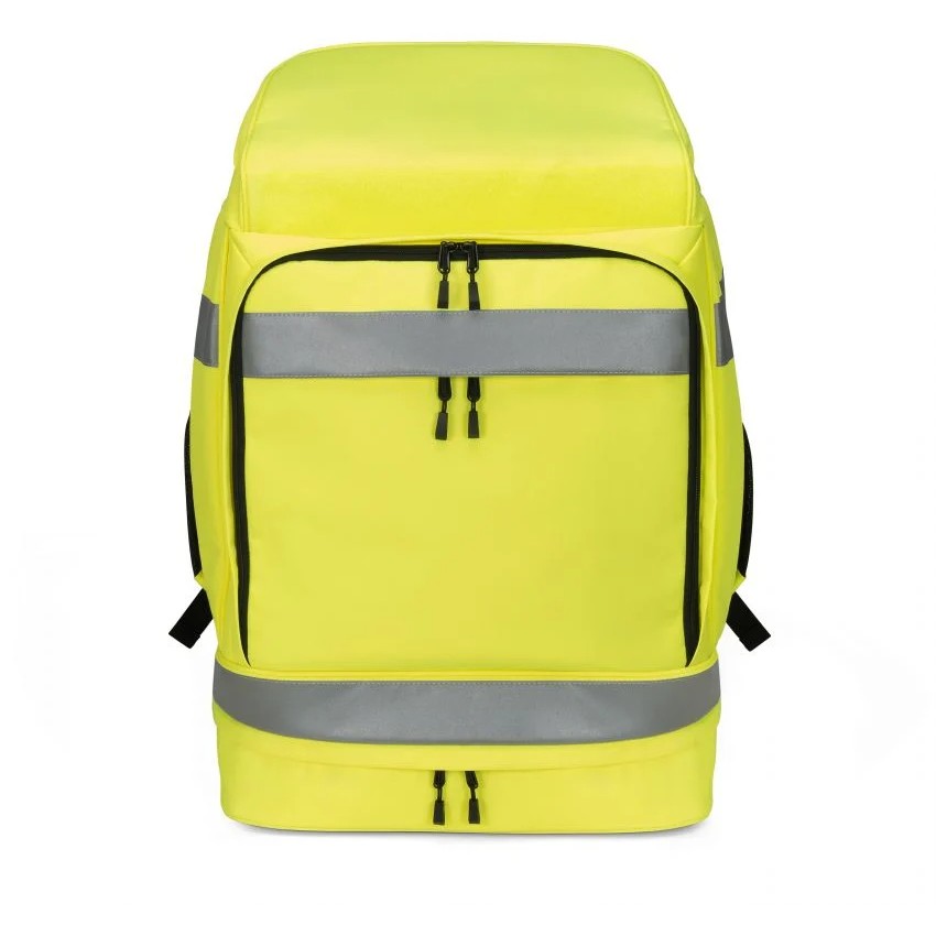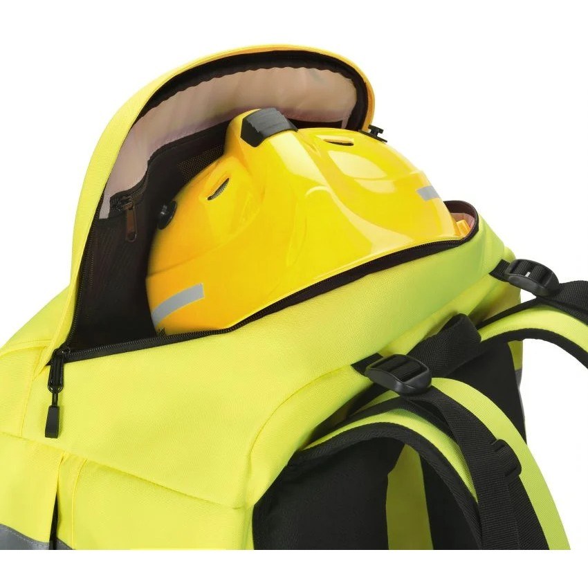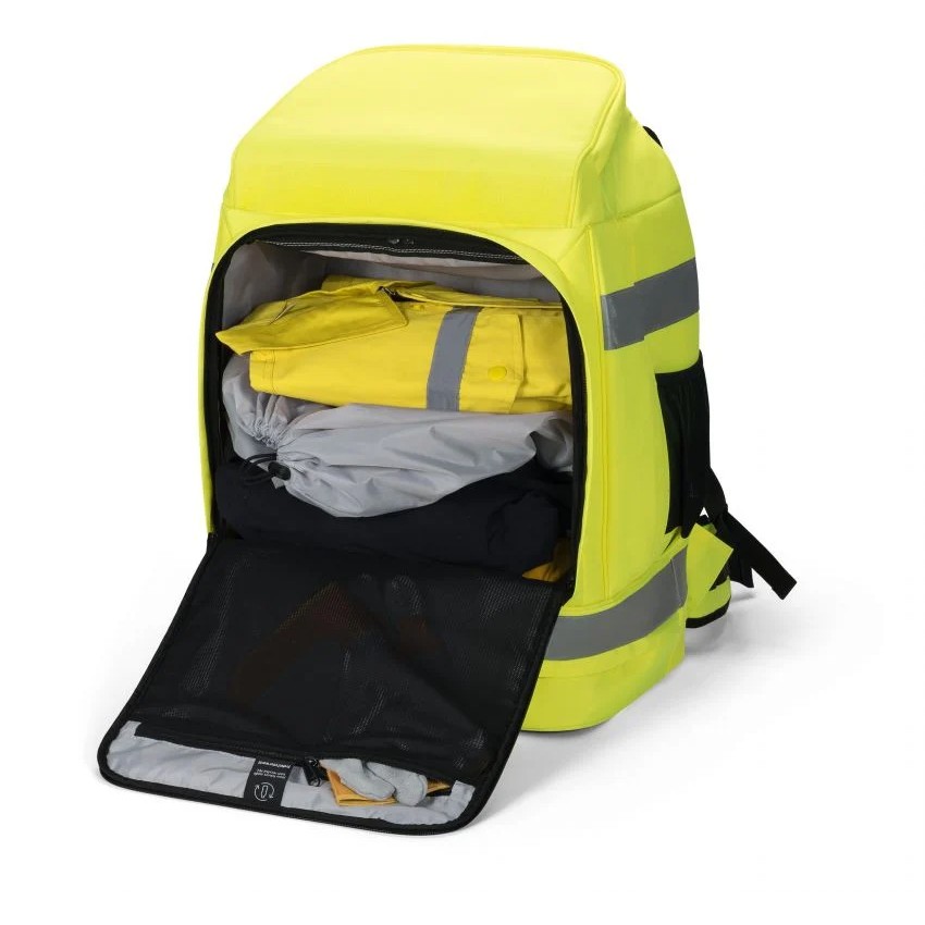 DICOTA Hi-Vis. Produkthauptfarbe: Gelb, Stil: Stadt, Färbung: Einfarbig. Zertifizierung: EN ISO 20471:2013, EN ISO 4920, Level 4. Breite: 388 mm, Tiefe: 290 mm, Höhe: 610 mm. Material: Polyethylenterephthalat, Thermoplastische Polyurethane (TPU)