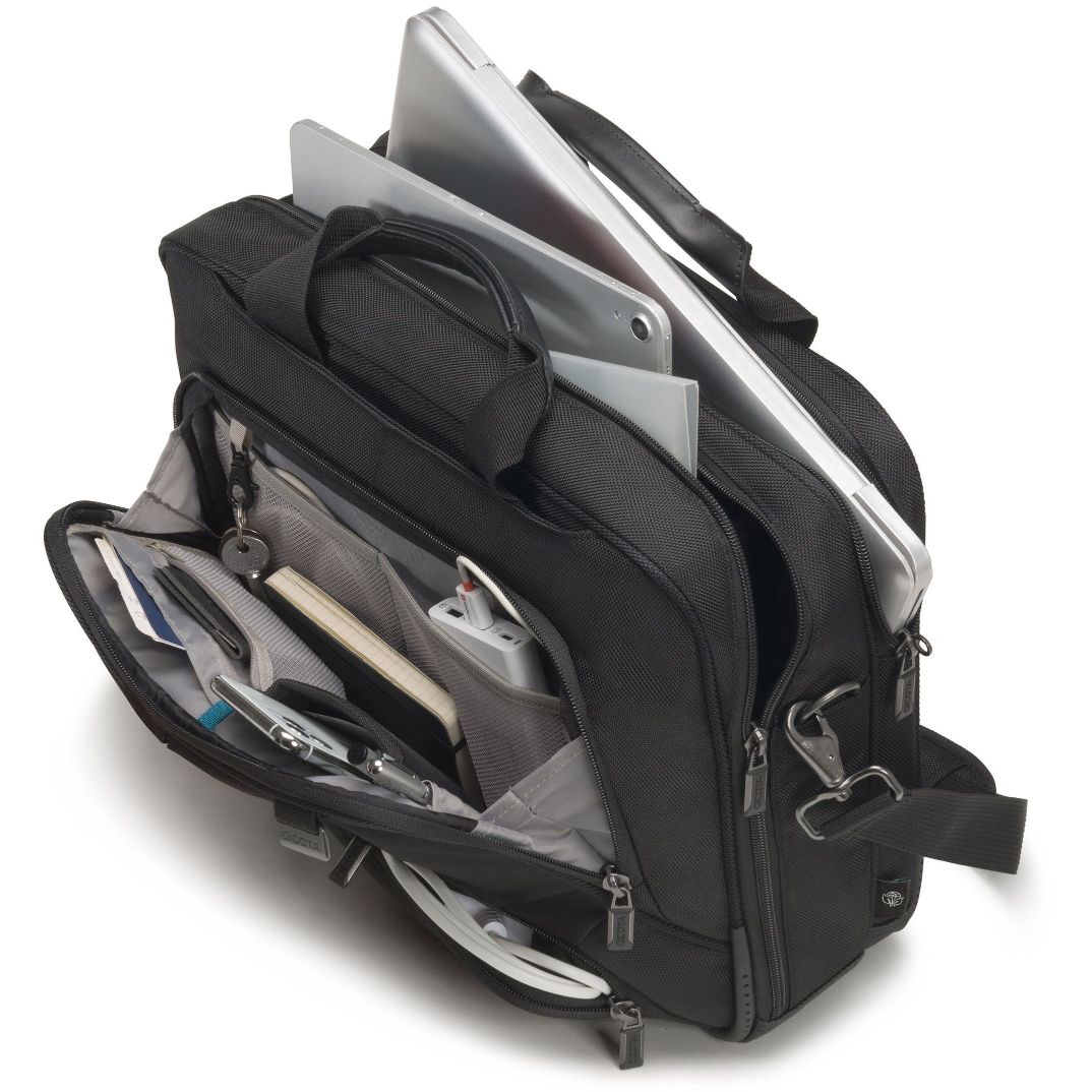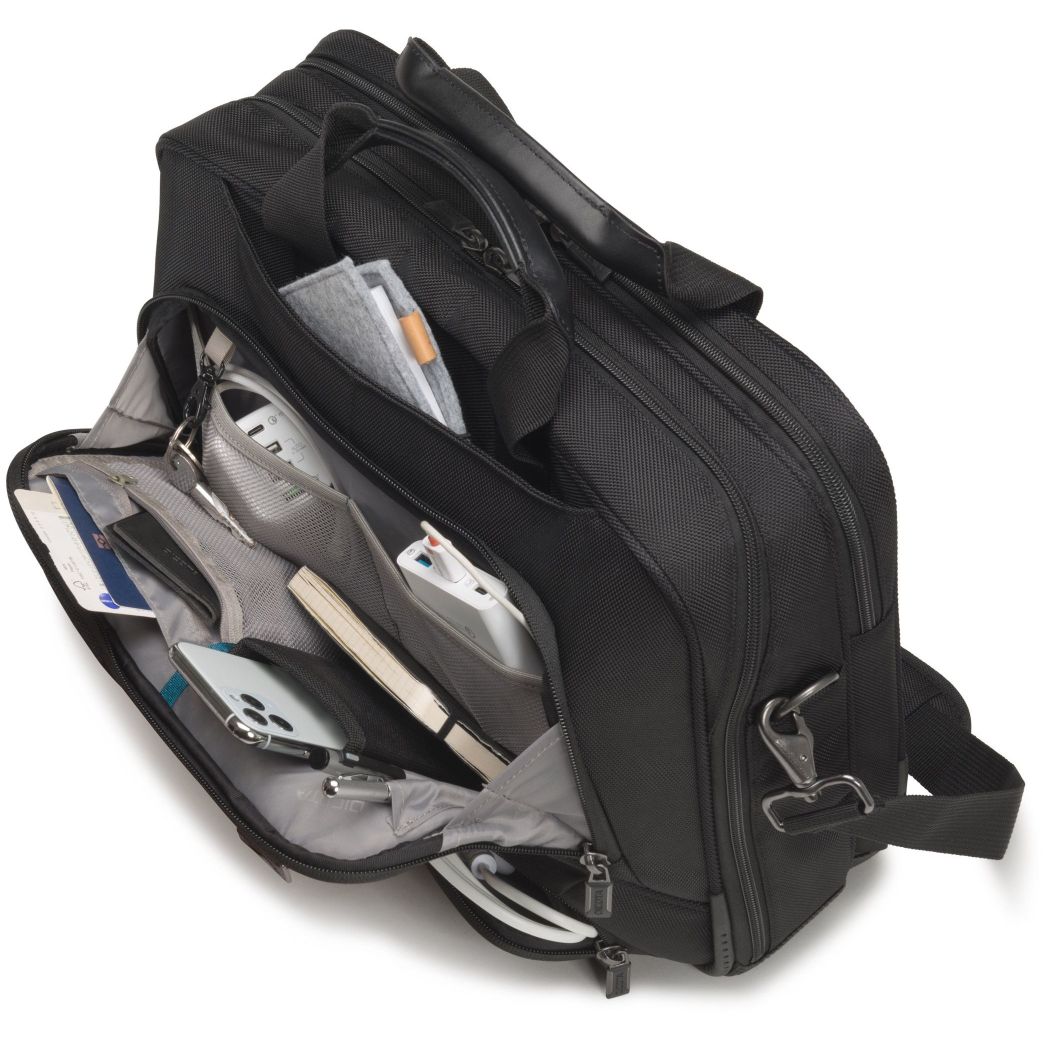 DICOTA Eco Top Traveller PRO. Etui-Typ: Toploader-Tasche, Maximale Bildschirmgröße: 35,8 cm (14.1″), Tragegriff(e), Schultergurt. Gewicht: 1,36 kg. Oberflächenfärbung: Einfarbig