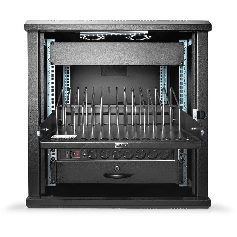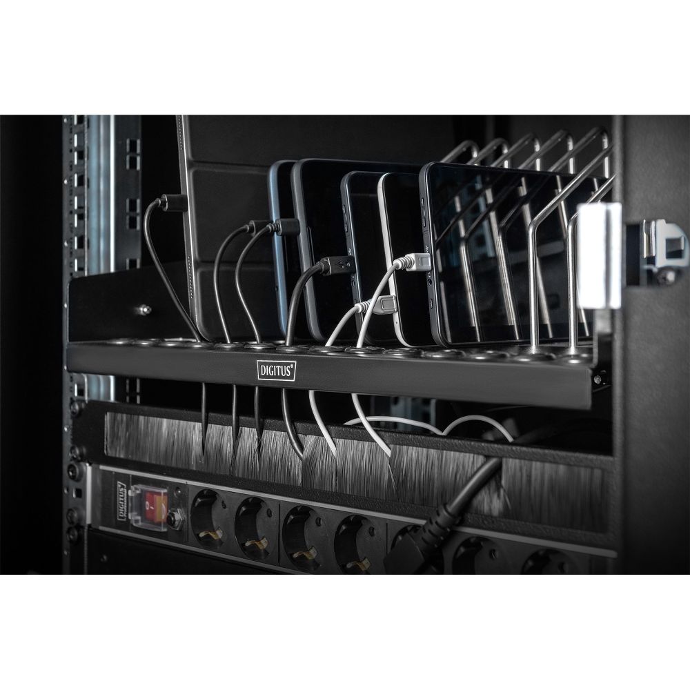 DIGITUS Fachboden ausziehbar für 14 Geräte(Phone,Tablet,NB)