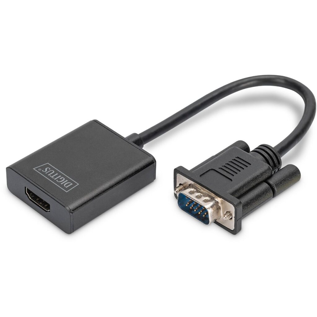 Digitus VGA – HDMI Konverter. Kabellänge: 0,15 m, Anschluss 1: VGA (D-Sub), Maximale Auflösung: 1920 x 1080 Pixel. Gewicht: 50 g, Breite: 45 mm, Tiefe: 45 mm. Verpackungsbreite: 75 mm, Verpackungstiefe: 265 mm, Paketgewicht: 143,333 g
