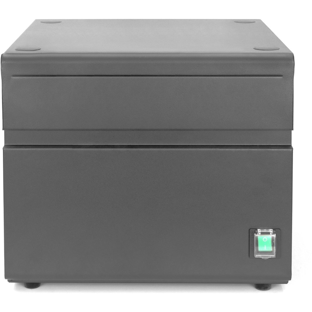 Digitus Mobiler Desktop Ladeschrank für 10 Notebooks/Tablets bis 13 Zoll, UV-C, USB-C. Typ: Gehäuse zur Verwaltung tragbarer Geräte, Produktfarbe: Schwarz, Platzierung: Tisch. Unterstützte tragbare Geräte: Laptop, Tablets, Unterstützte Geräteanschlüsse: USB Typ-C, Maximale Bildschirmgröße: 35,6 cm (14″). AC Eingangsspannung: 110 – 220 V, AC Eingangsfrequenz: 50 – 60 Hz, Eingangsstrom: 16 A. Breite: 360 mm, Tiefe: 370 mm, Höhe: 345 mm. Mitgelieferte Kabel: AC
