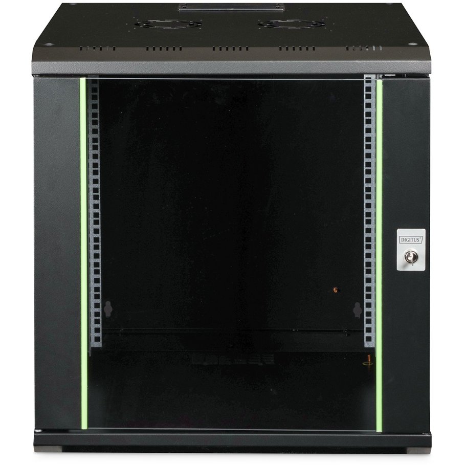 Digitus Wandgehäuse Unique Serie – 600×600 mm (BxT). Typ: Wandmontiertes Regal, Rack-Kapazität: 12U, Höchstgewichtskapazität: 100 kg, Sperrschloss, Ablageschienen, Internationale Schutzart (IP-Code): IP20, Produktfarbe: Schwarz