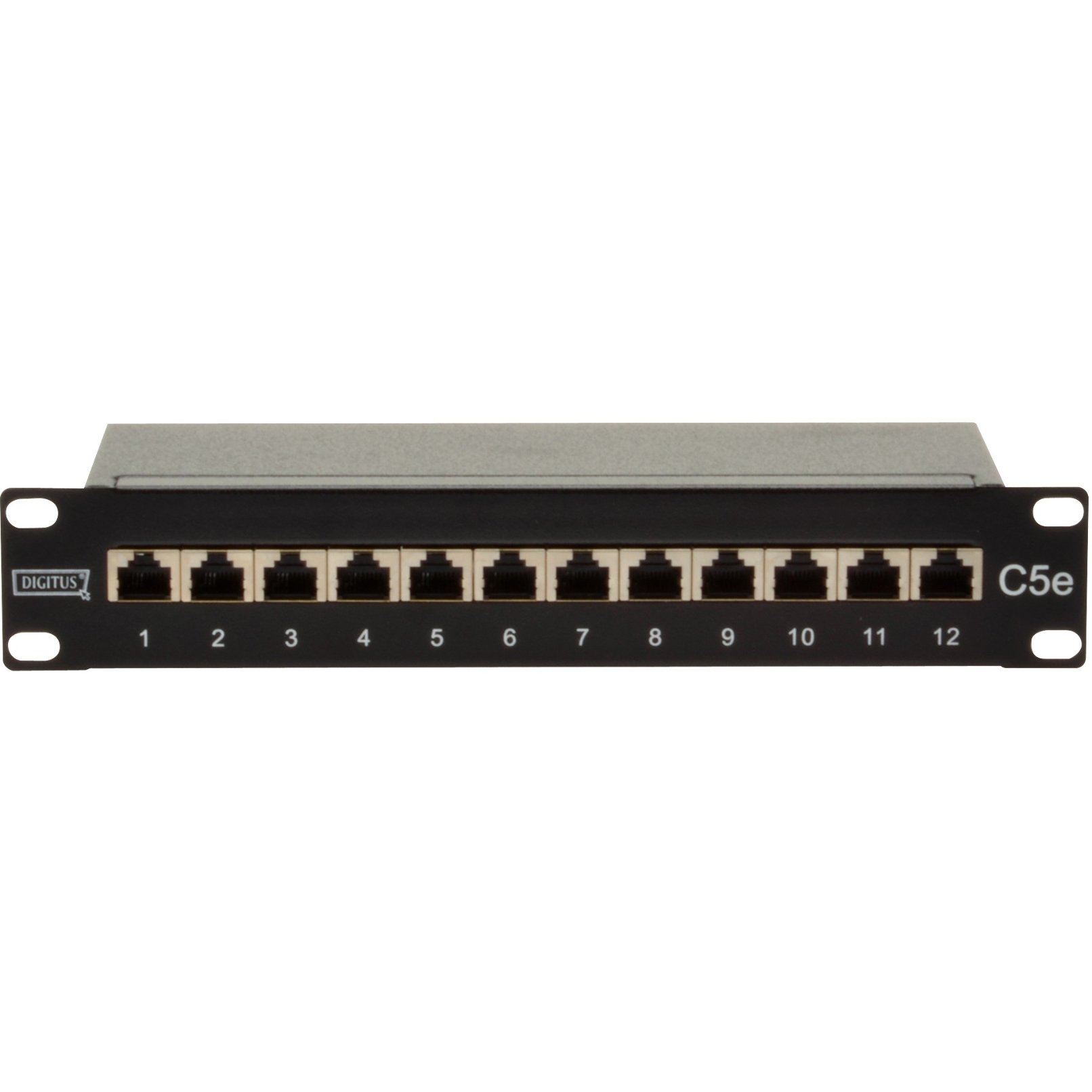 DIGITUS Patchpanel 1HE 12-Port Cat5e ClassD geschirmt schw.
