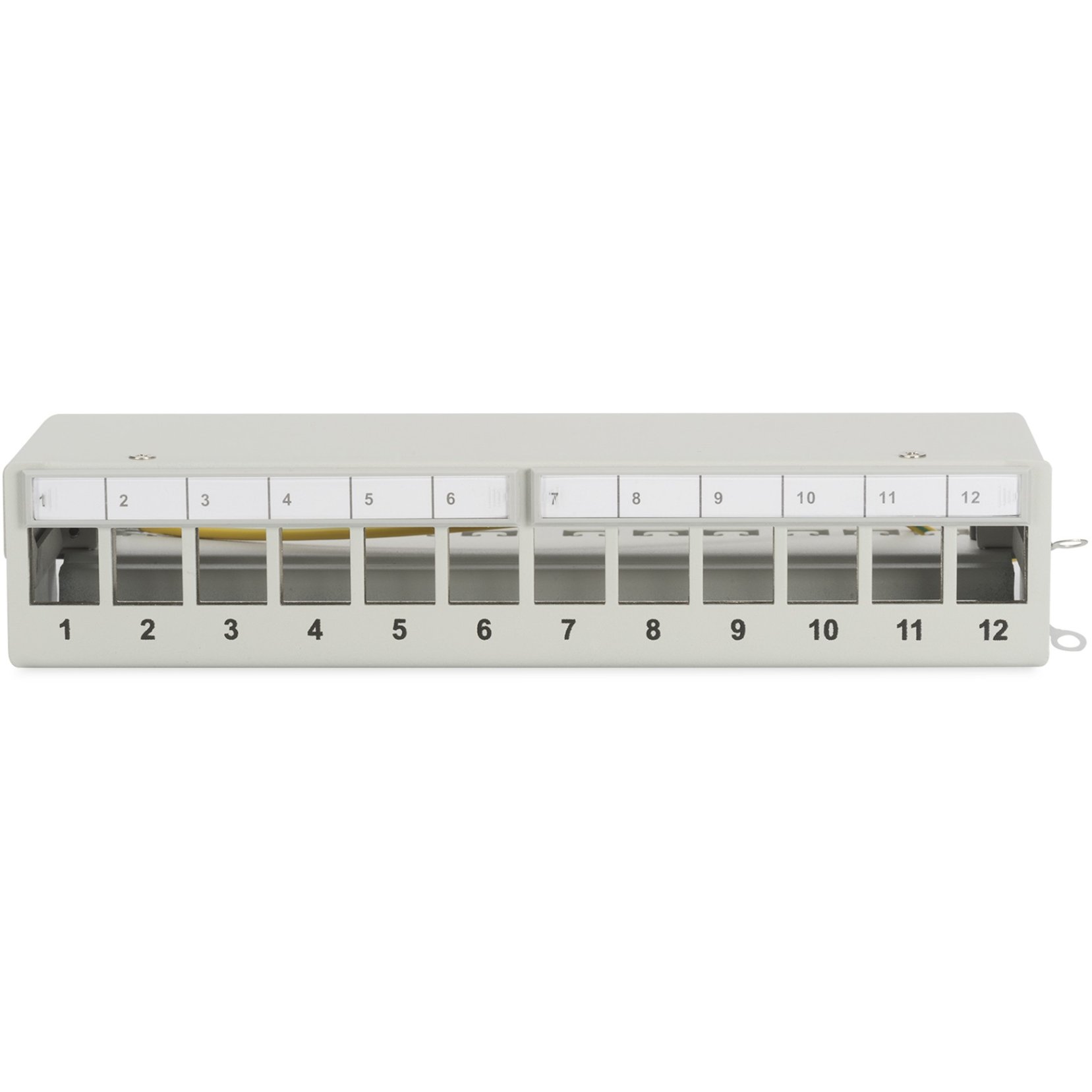 Digitus Modulares Desktop Patch Panel, geschirmt, 12-Port. Stecker: RJ-45. Montage: Rackeinbau, Rack-Kapazität: 1U, Produktfarbe: Grau. Verpackungsbreite: 125 mm, Verpackungstiefe: 265 mm, Paketgewicht: 840 g. Ursprungsland: China