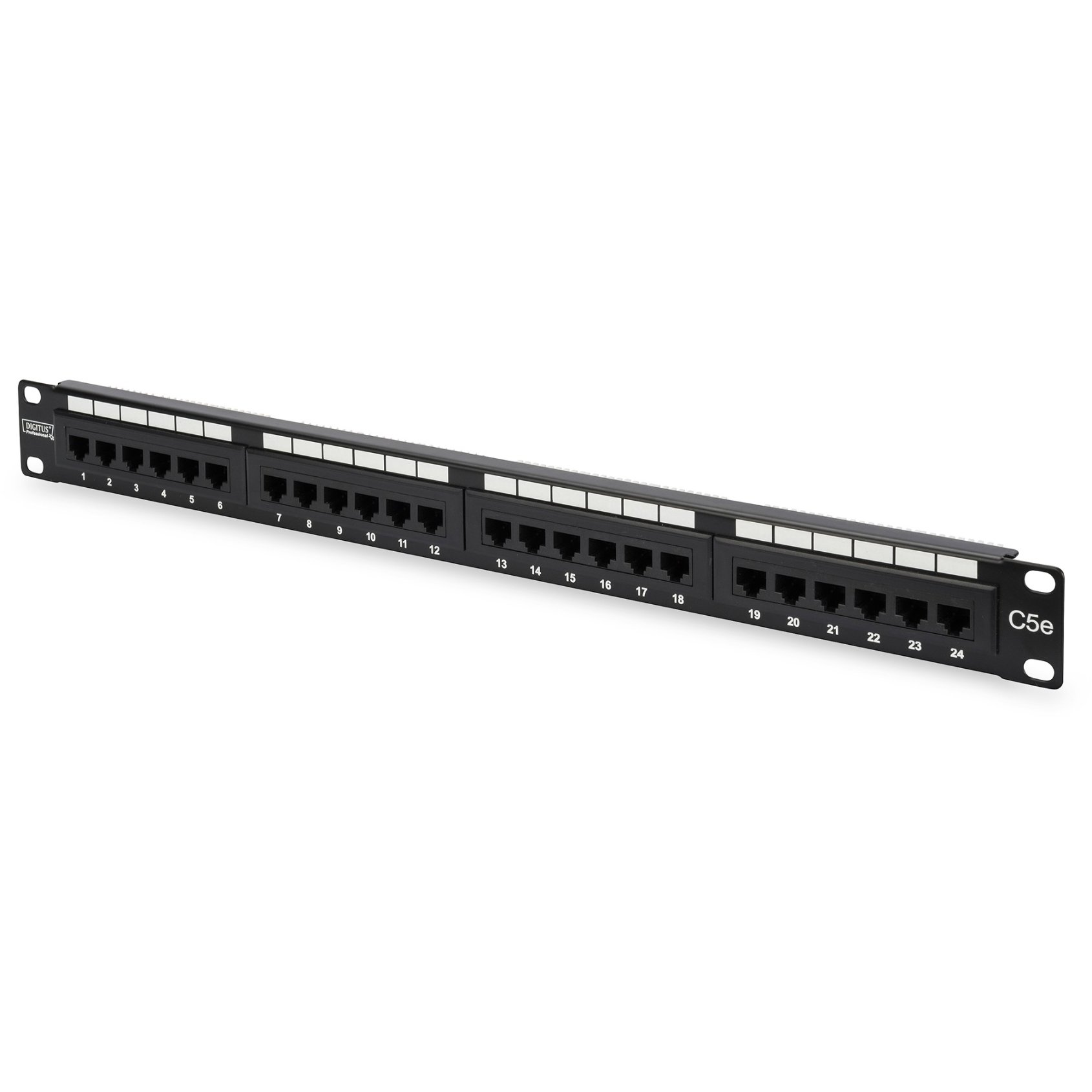 Digitus CAT 5e Patch Panel. Stecker: RJ-45, unterstütze Kabeltypen: Cat5e. Produktfarbe: Schwarz. Verpackungsbreite: 515 mm, Verpackungstiefe: 60 mm, Paketgewicht: 654 g. Ursprungsland: China