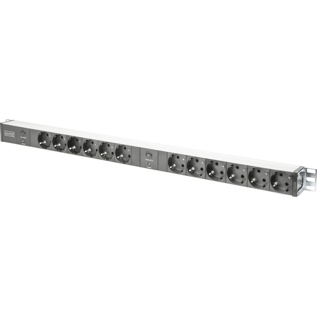 DIGITUS Steckerleiste 12fach Ü-Schutz Alu 2m Zuleitung