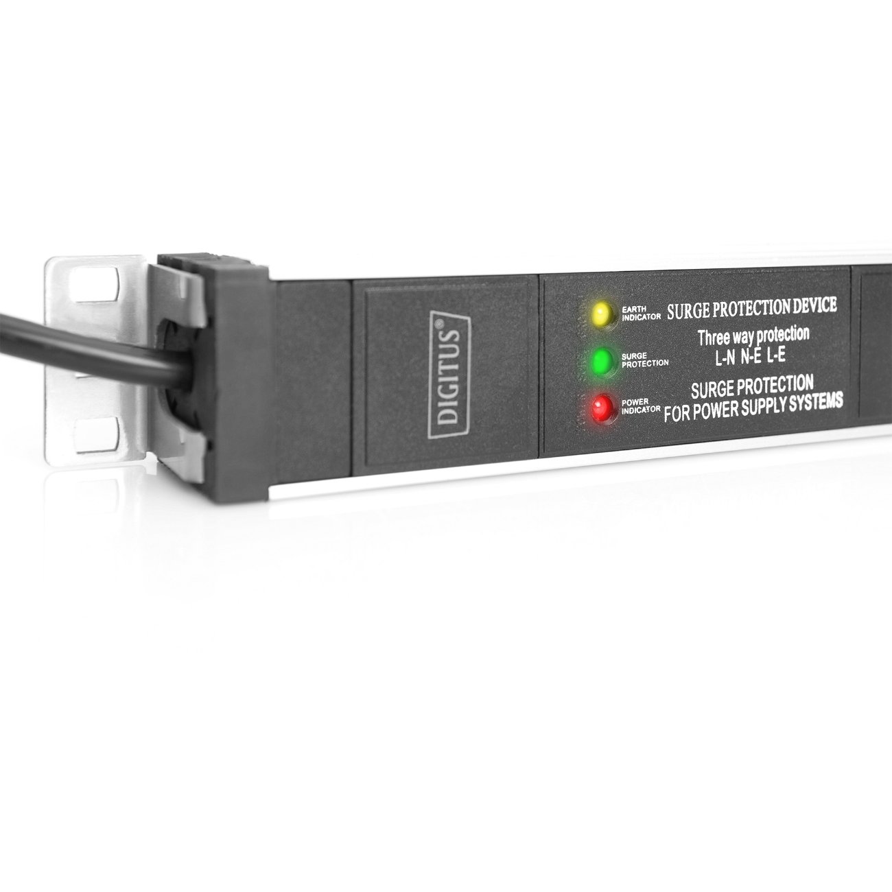 Digitus Steckdosenleiste mit Aluminiumprofil und Überspannungsschutz, integrierter Netzfilter, 7-fach Schutzkontaktsteckdose, 2 m Zuleitung Schutzkont. Rack-Kapazität: 0U, Gehäusematerial: Aluminium, Produktfarbe: Schwarz, Silber. Anzahl der AC-Ausgänge: 7 AC-Ausgänge, AC-Steckertypen: Typ F, Stecker: Typ F. Kabellänge: 2 m. Nominale Eingang Spannung: 250 V, Stromstärke (maximal): 16 A, AC Eingangsfrequenz: 50 – 60 Hz. Paketgewicht: 1,45 kg, Verpackungsbreite: 125 mm, Verpackungstiefe: 755 mm