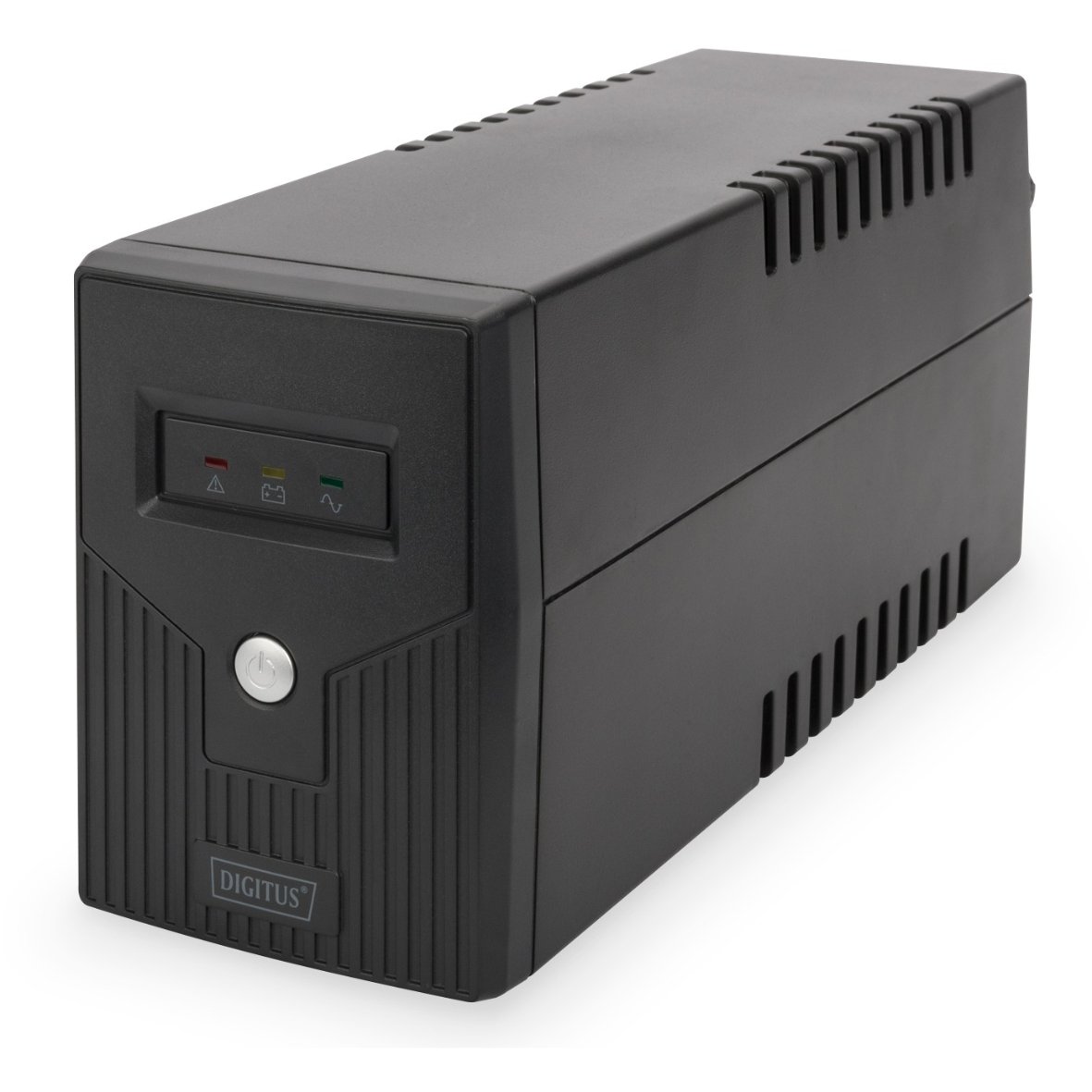 Digitus Line-Interaktiv USV, 600 VA/360 W. USV-Topologie: Line-Interaktiv, Ausgangskapazität: 0,6 kVA, Ausgangsleistung: 360 W. AC-Steckertypen: Type E/F, Stecker: Typ F, Anzahl der AC-Ausgänge: 2 AC-Ausgänge. Batteriekapazität: 7 Ah, Akku-/Batteriespannung: 12 V, Akku-Ladezeit (90 %): 6 h. Formfaktor: Tower, Produktfarbe: Schwarz, Display-Typ: LCD. Breite: 101 mm, Tiefe: 298 mm, Höhe: 142 mm