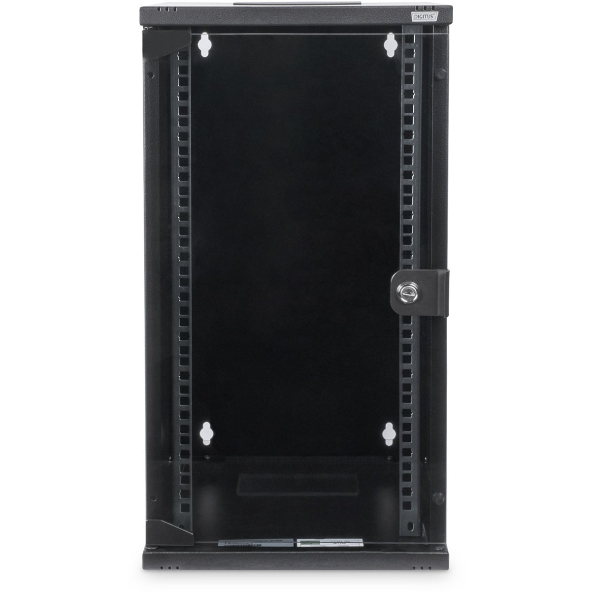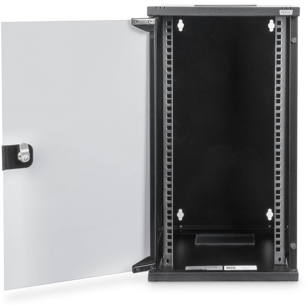 Digitus Wandgehäuse 254 mm (10″) – 312×300 mm (BxT). Typ: Wandmontiertes Regal, Rack-Kapazität: 12U, Höchstgewichtskapazität: 30 kg, Sperrschloss, Internationale Schutzart (IP-Code): IP20, Produktfarbe: Schwarz