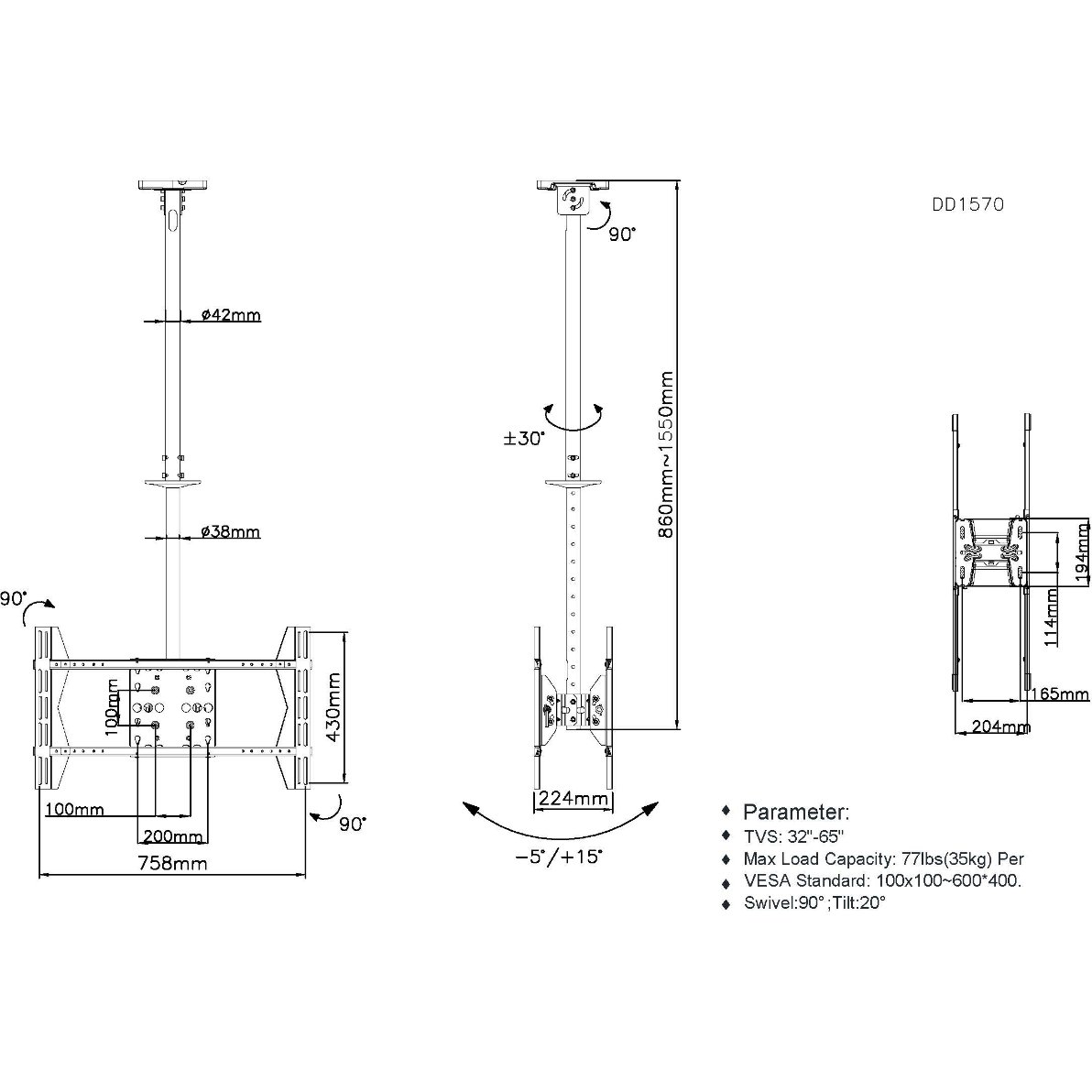 Equip Deckenhalterung 39″-75″/2TFT je 40kg 2Gelenke neig. sw lite Retail